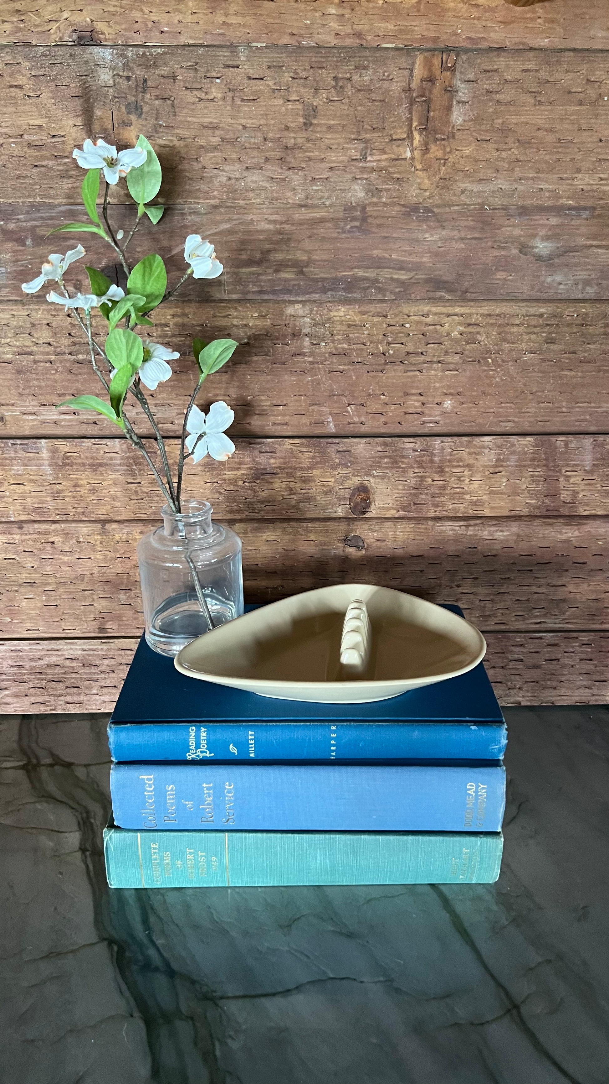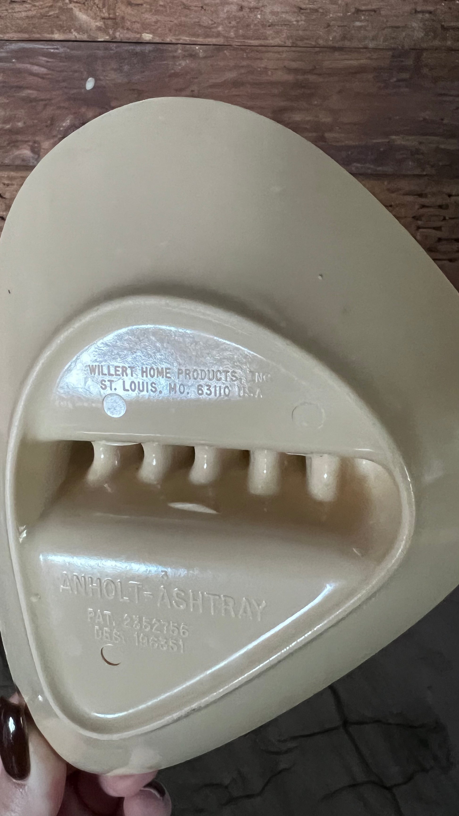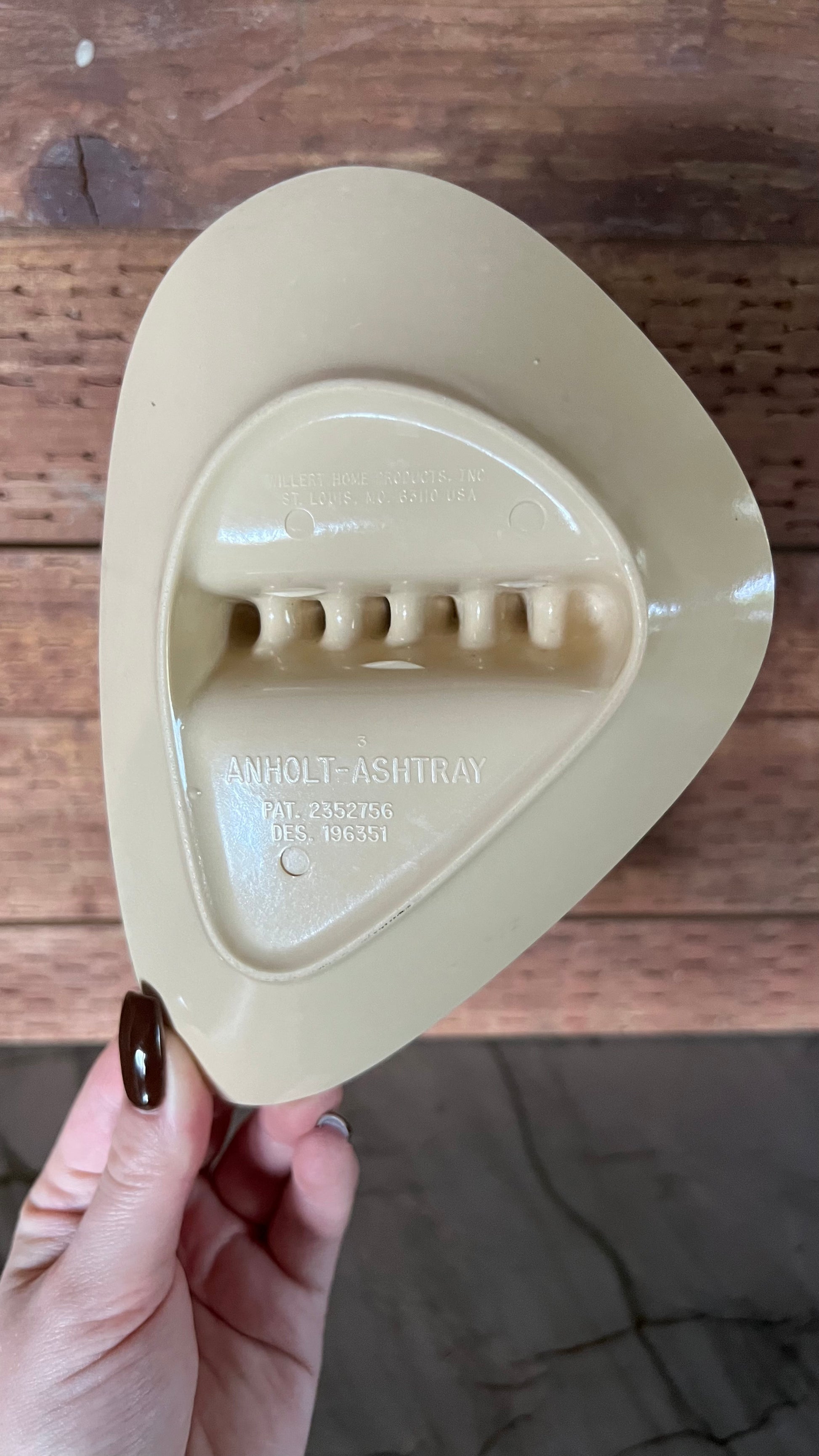 Vintage mid century modern Anholt Ashtray. Beautiful light tan color in a boomerang shape. Measures 7” by 4.75” by 1” at its widest points. From the 1960s. Very good vintage condition. Fun find!
