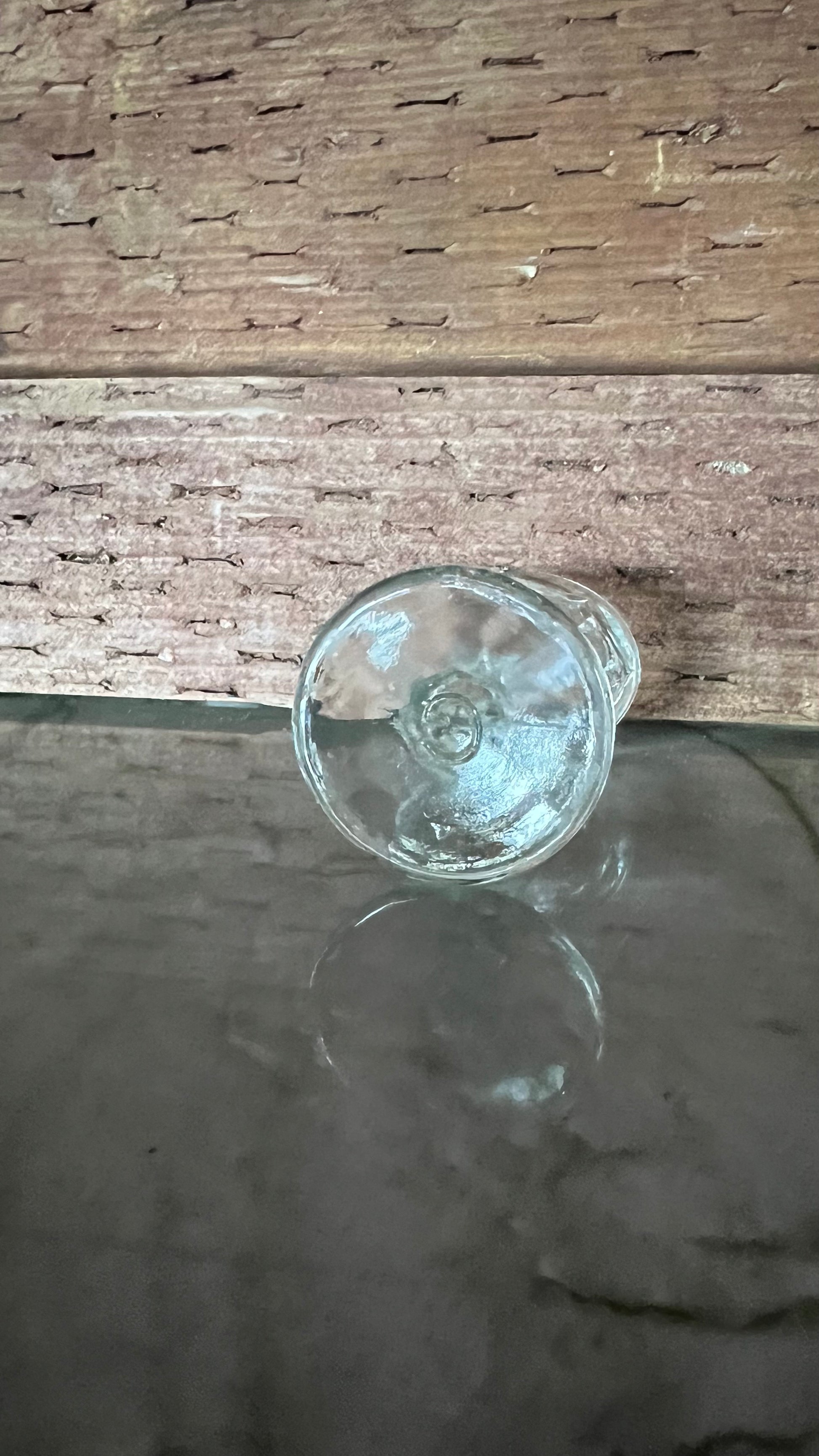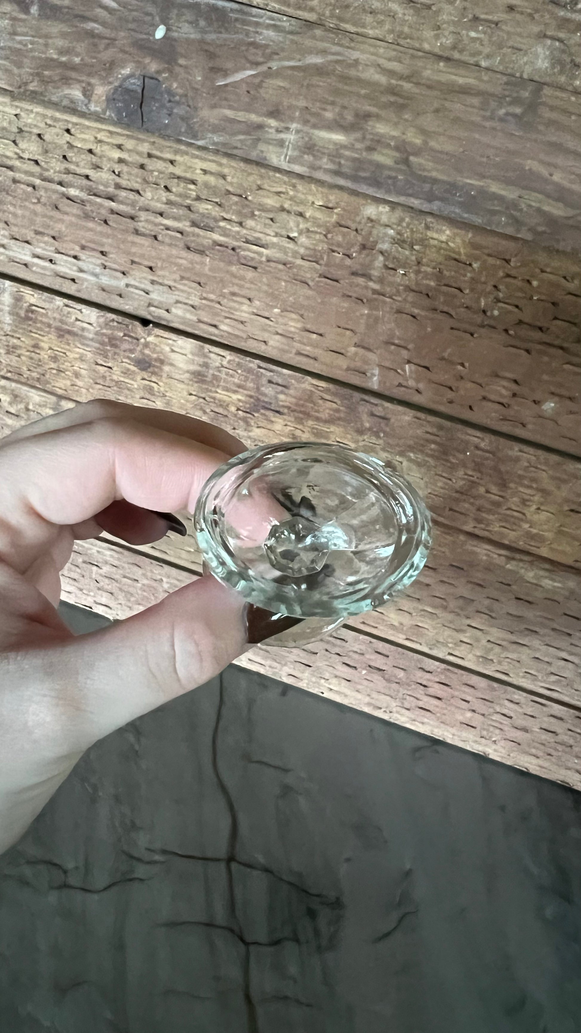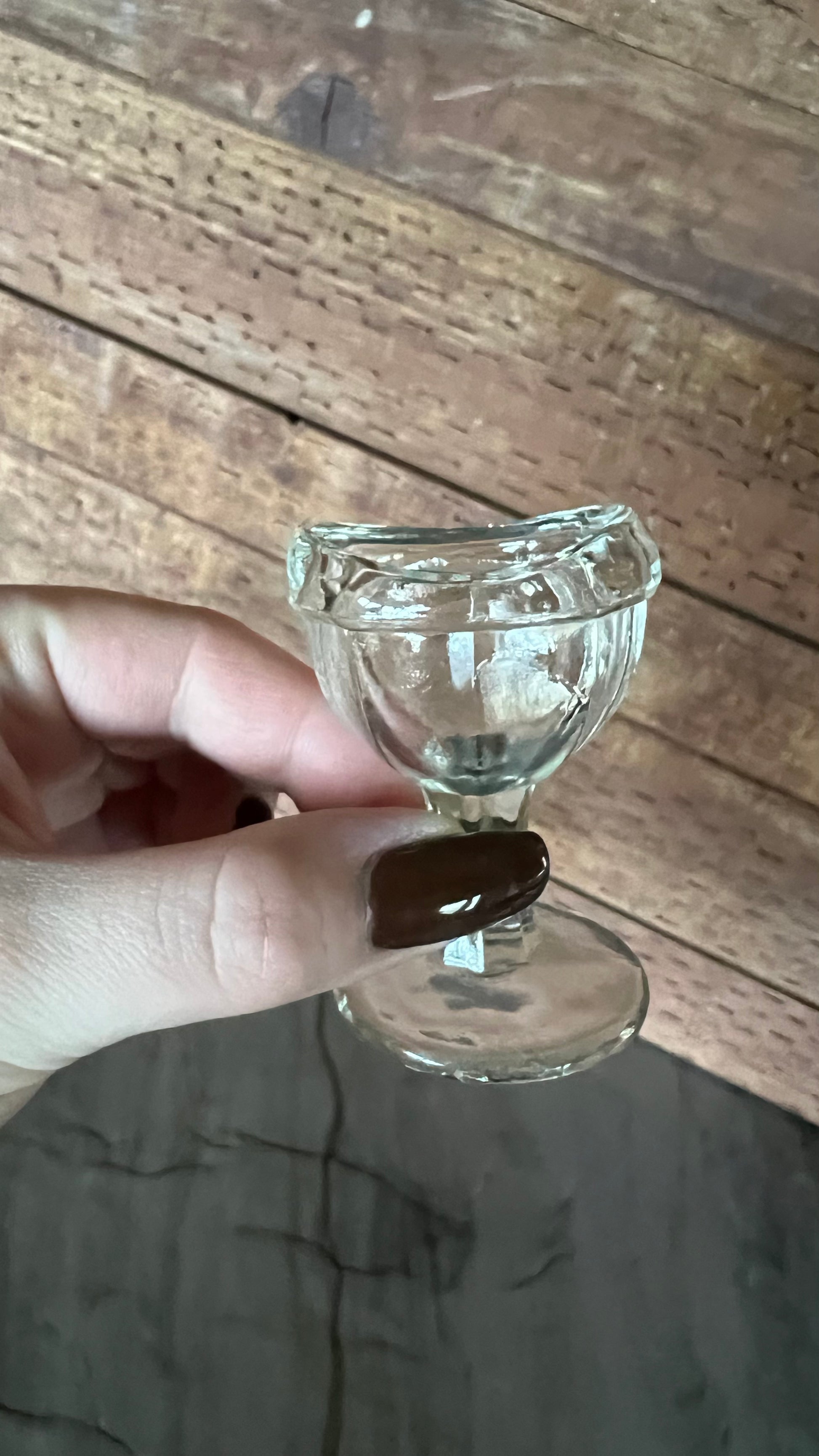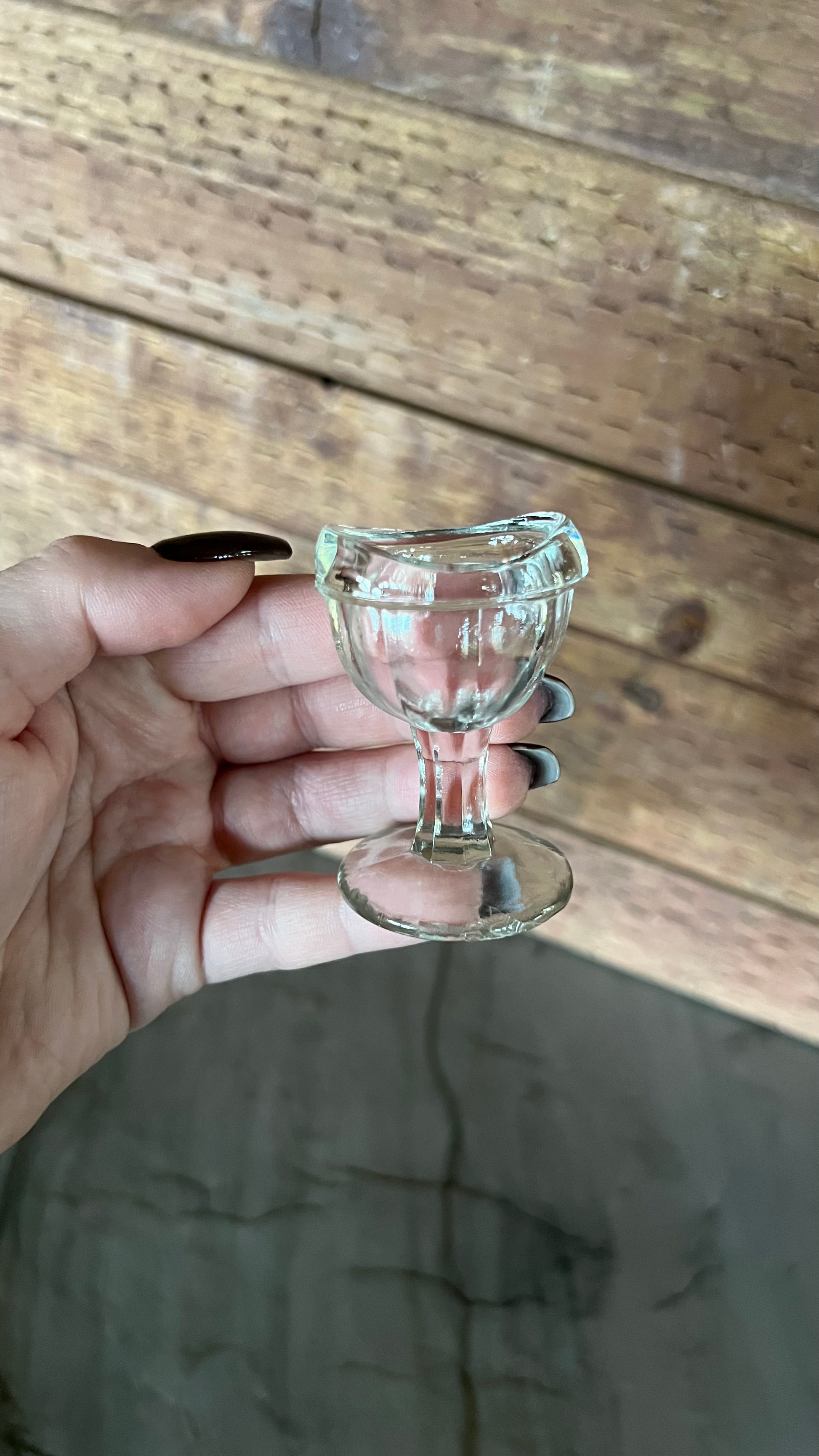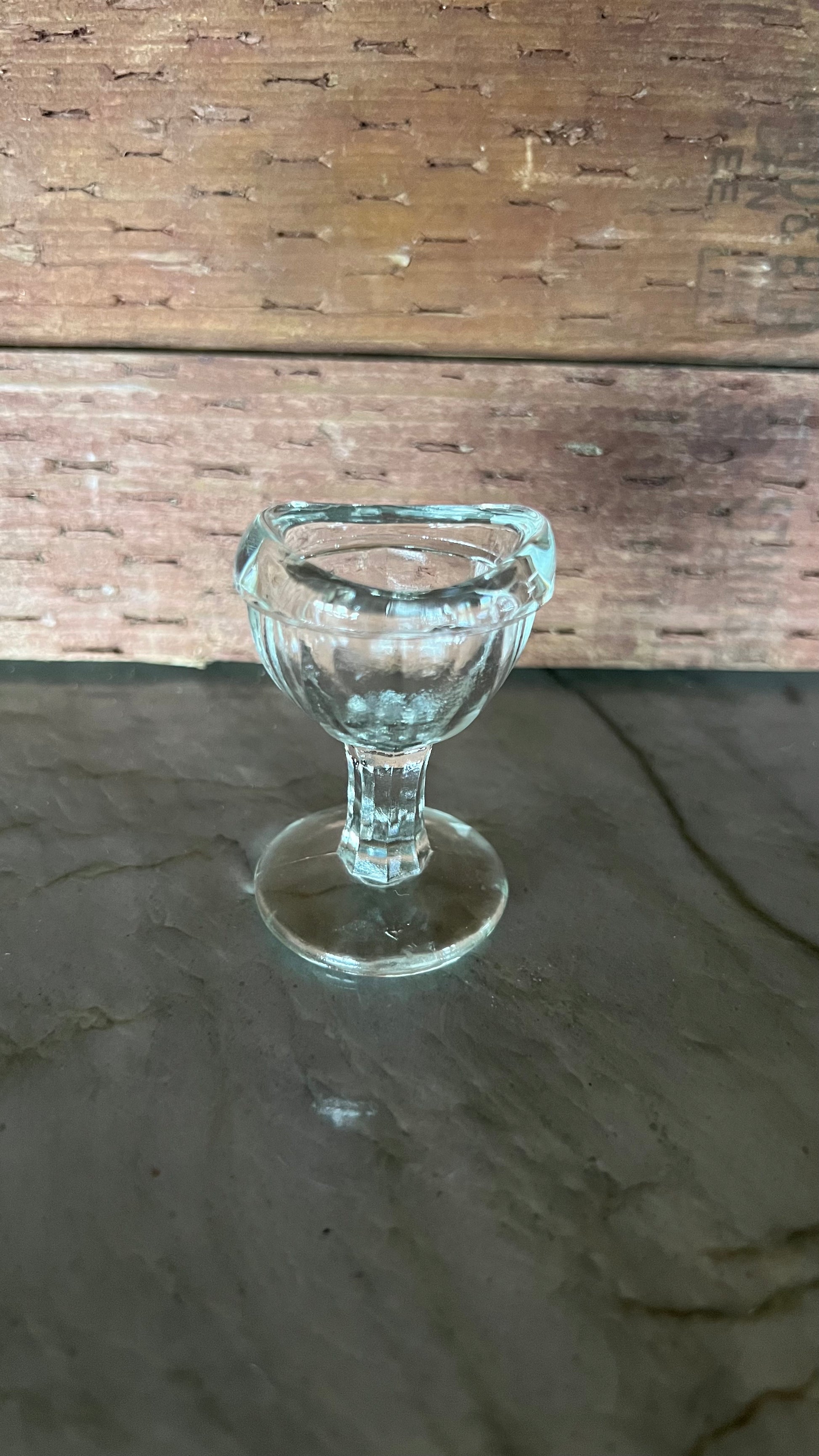 Antique clear glass eye wash cup with an 8 panel design. Excellent antique condition. Measures 2.25” tall with a 1.5” diameter at the base. Beautiful find!
