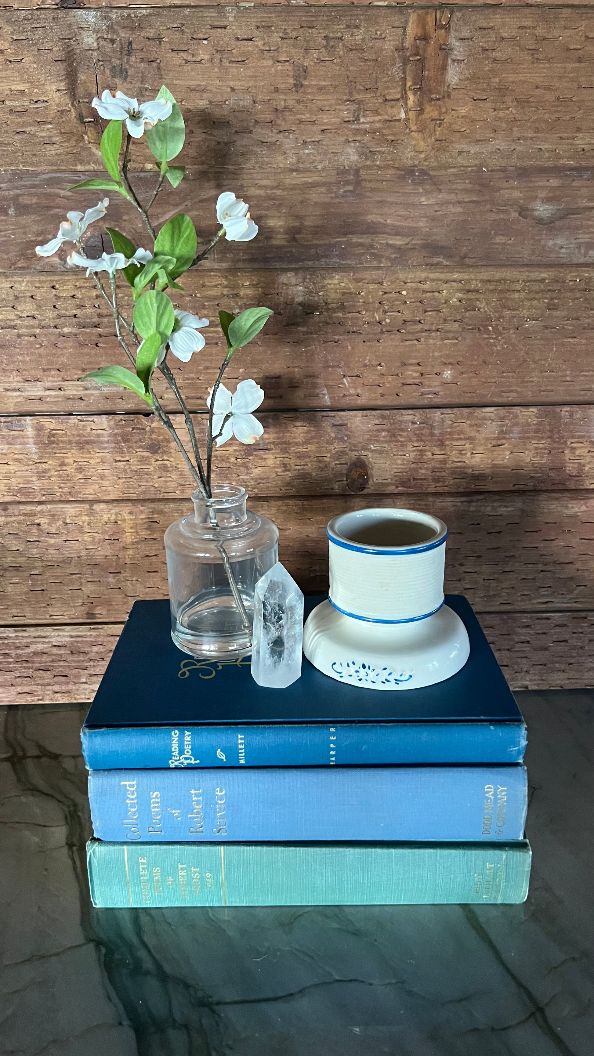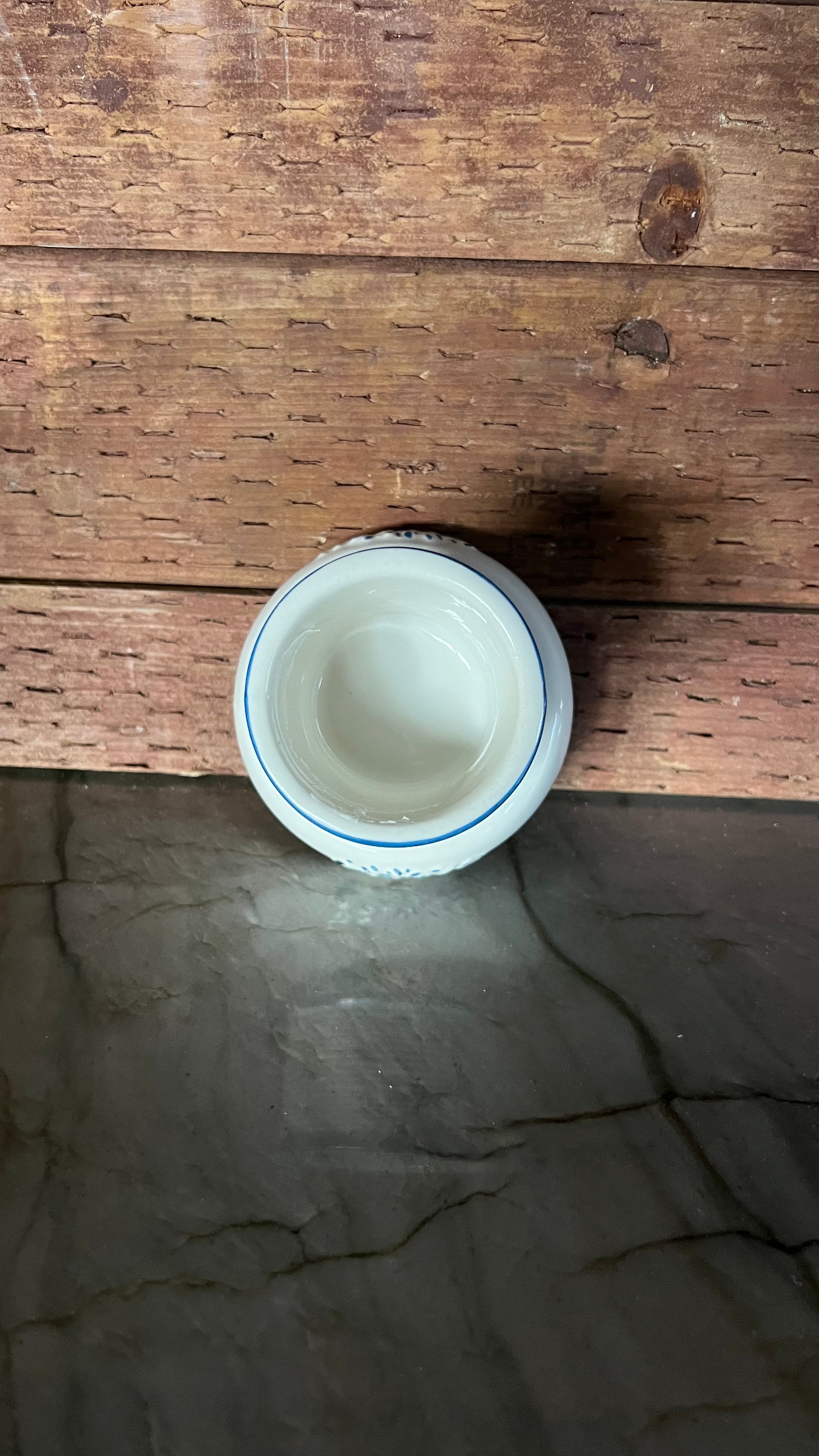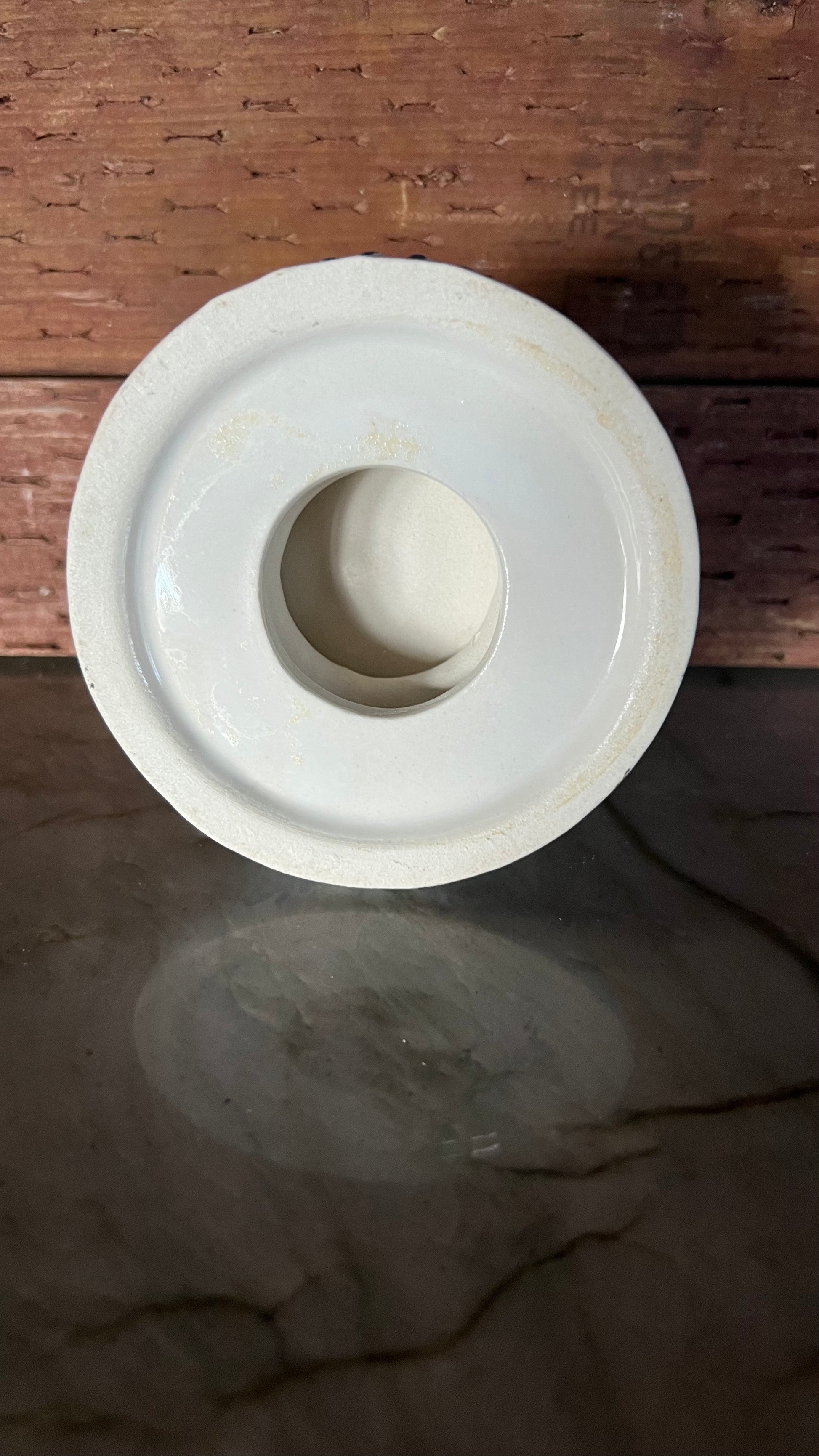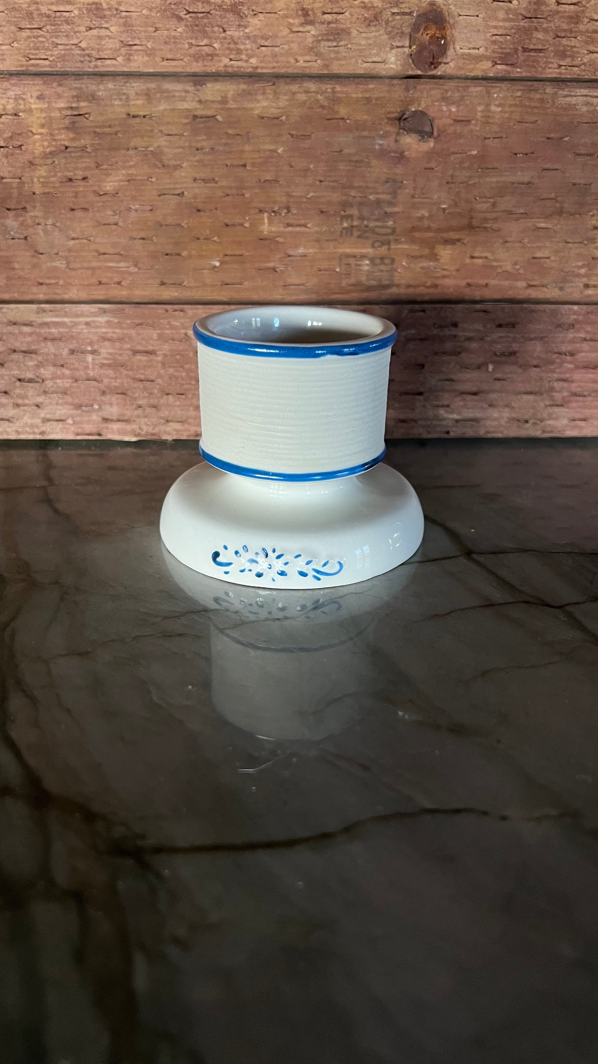 Antique porcelain match striker/holder. Blue coloring is clear and vibrant. Excellent vintage condition. Measures 2.75” tall with a 3.5” diameter at the base. Beautiful piece!