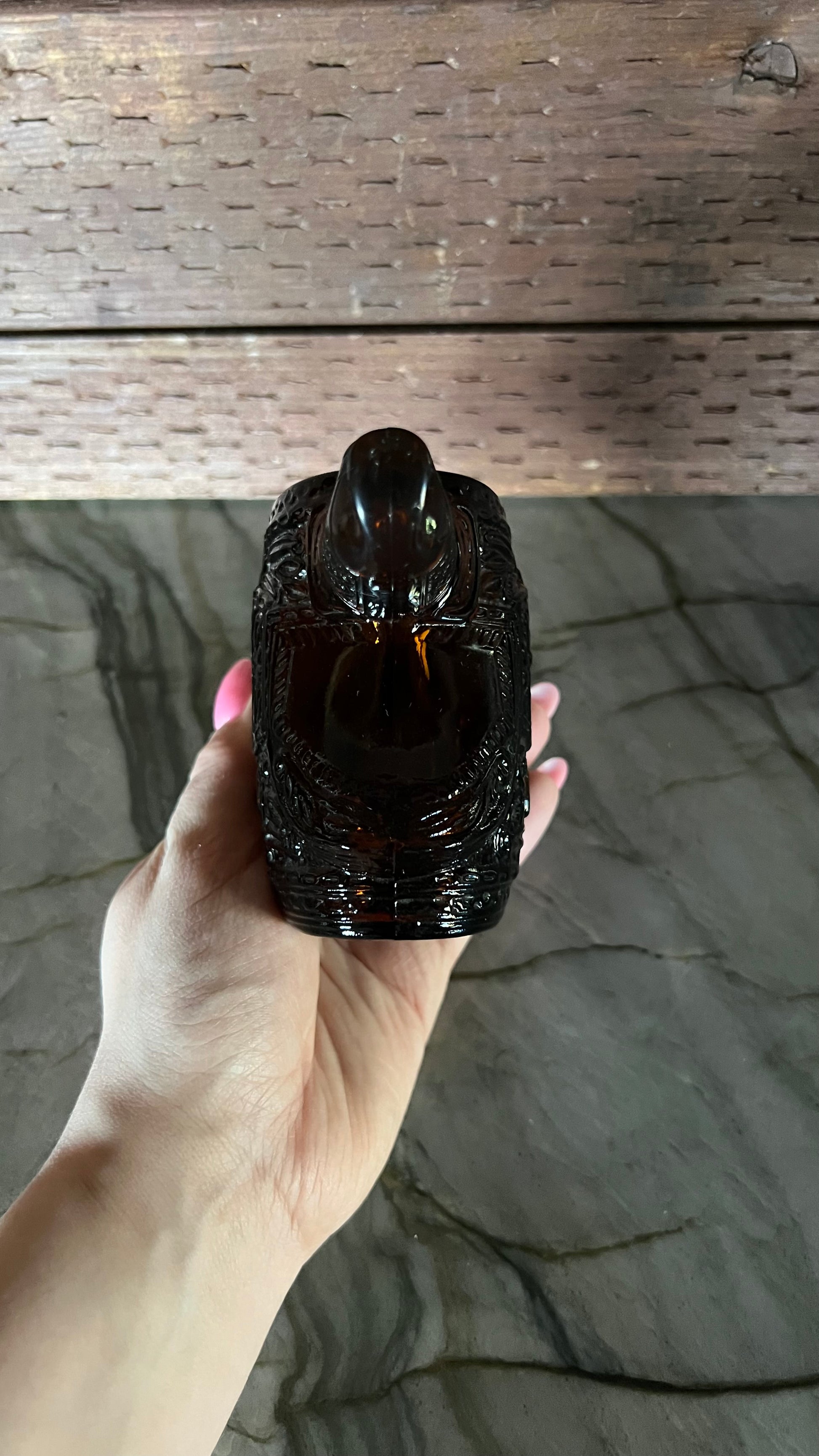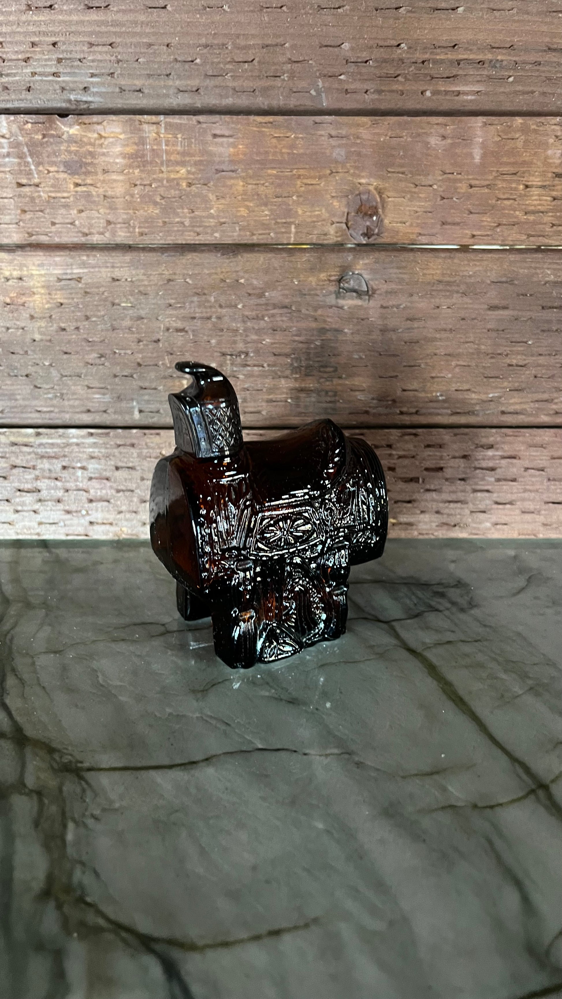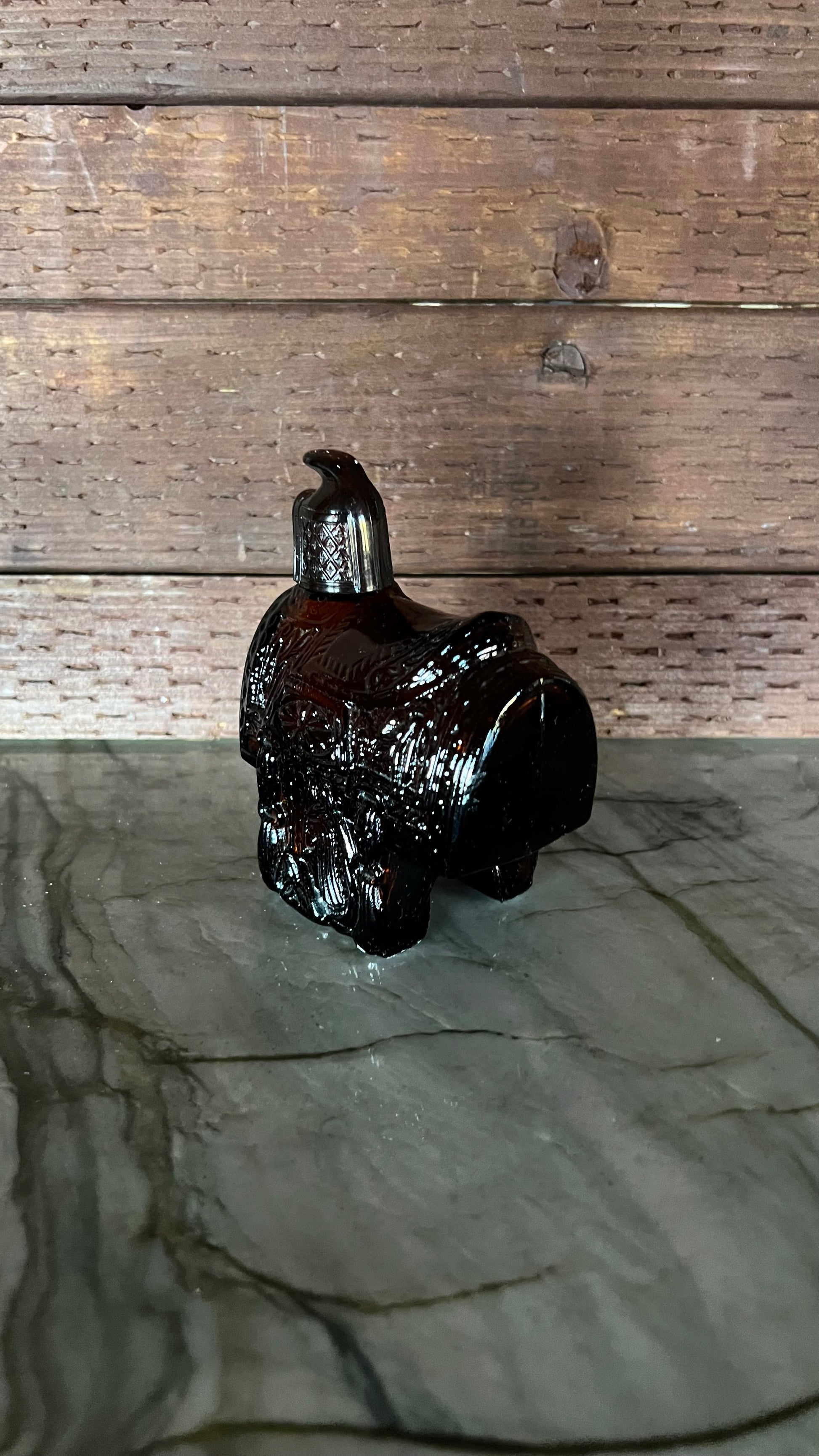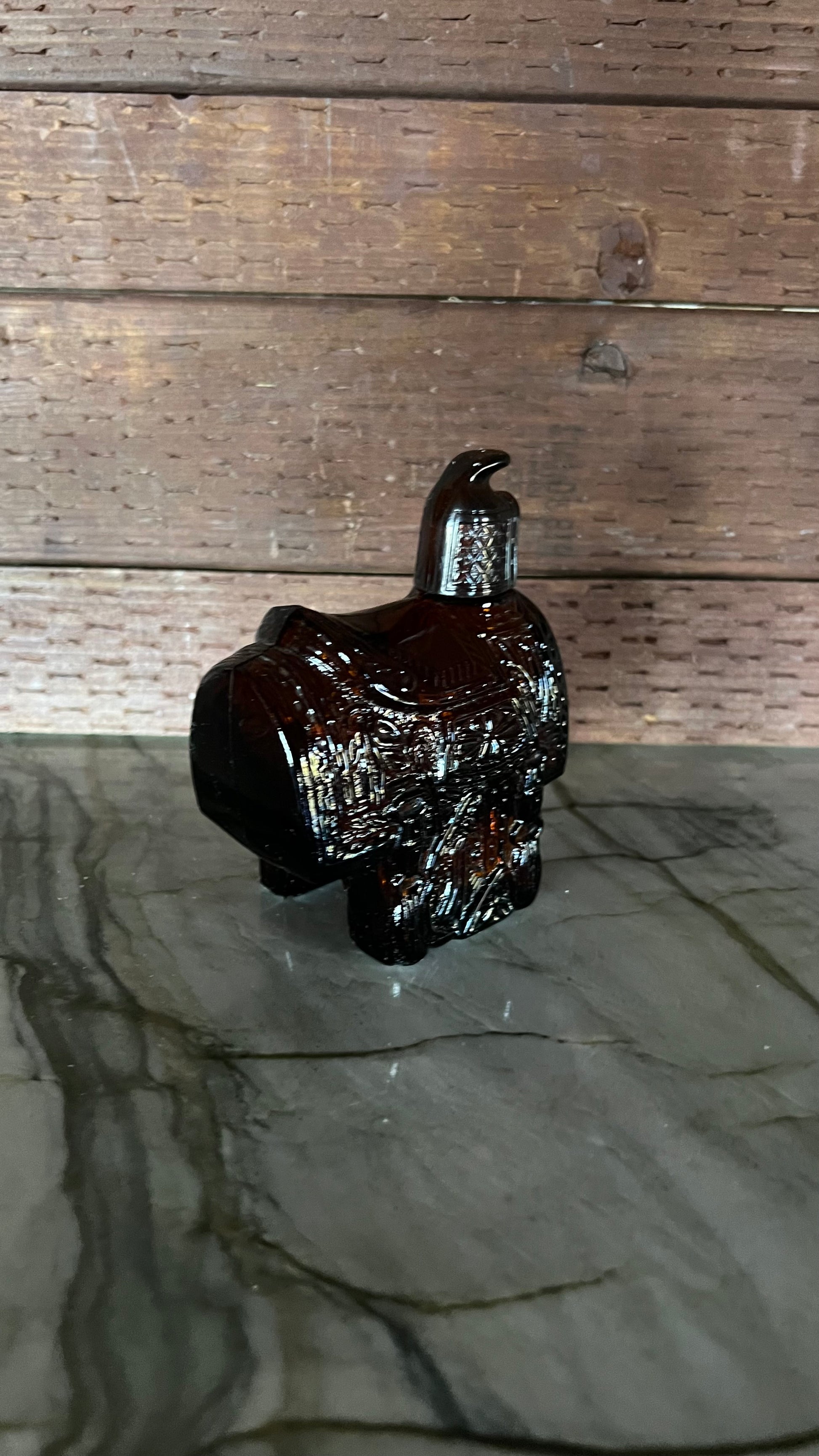 Avon Wild Country after shave saddle canister. Beautiful brown color! Measures 4.5” tall and 3.5” at the widest point. Canister is empty, there is no product included. The sticker is completely in tact on the bottom. Saddle canister is in excellent vintage condition, with no signs of wear.