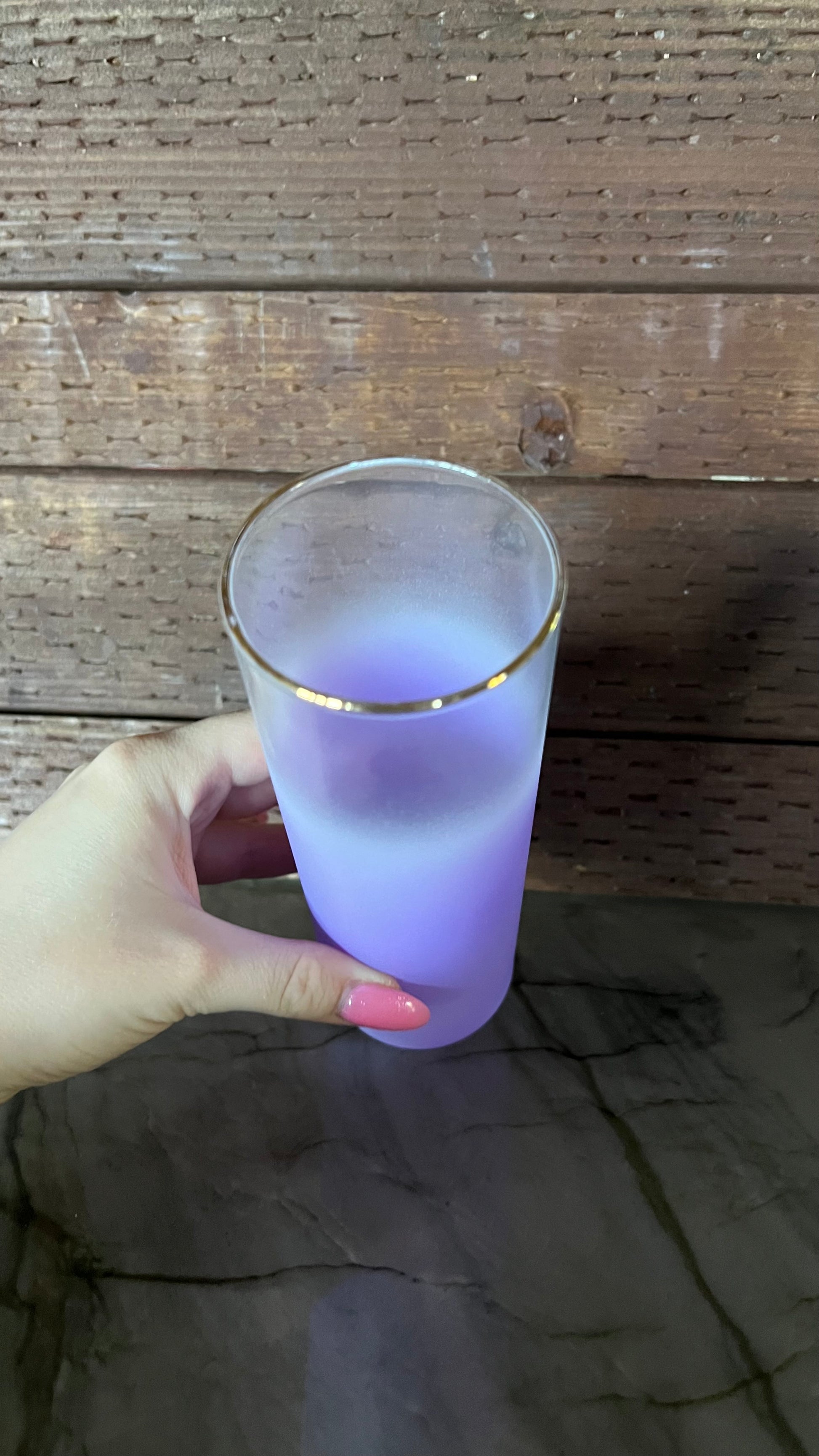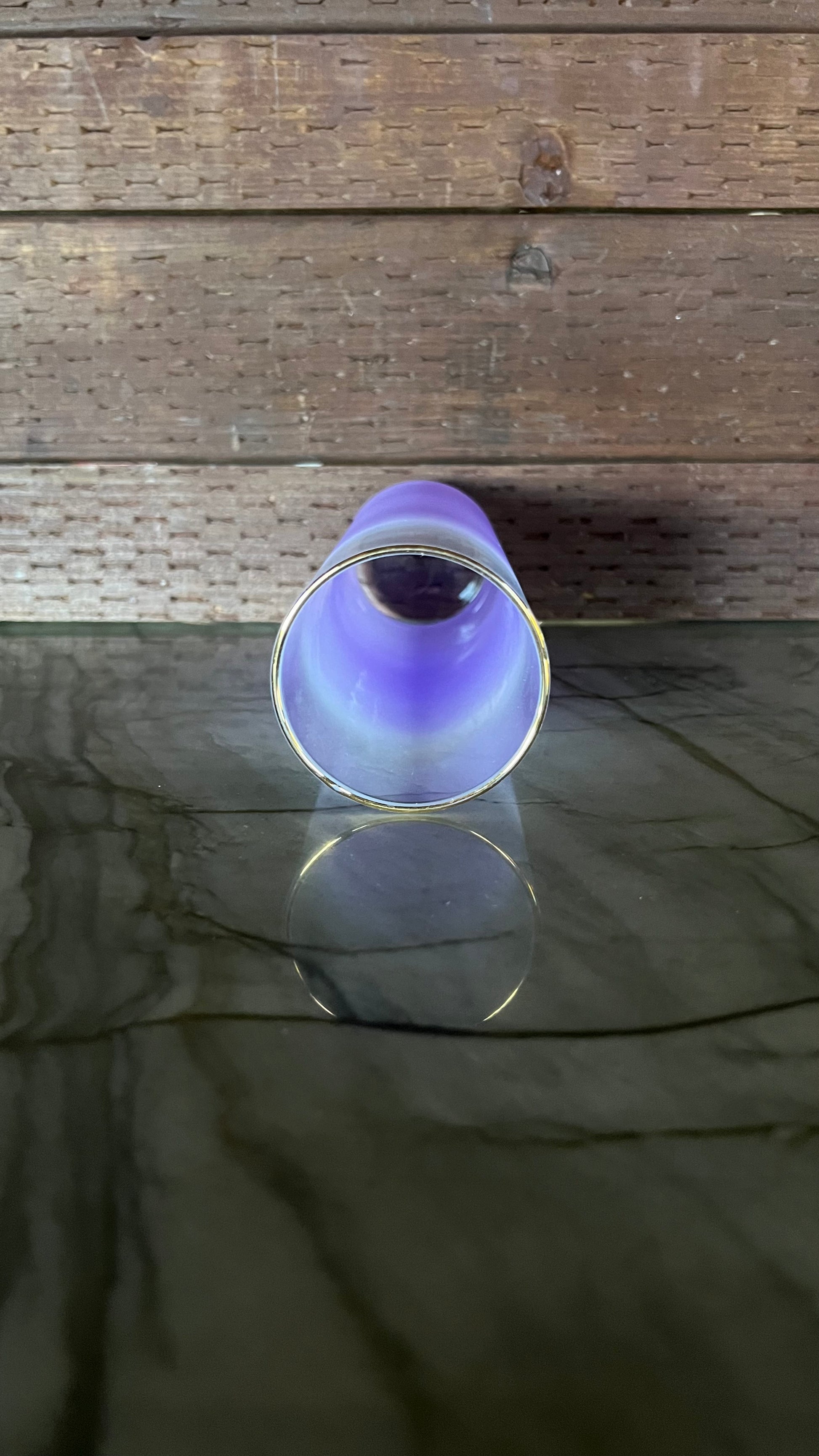 Beautiful single highball purple Blendo glass. Measures 6.75” tall with a diameter of 2 3/8”. Excellent vintage condition, with very mild signs of wear.