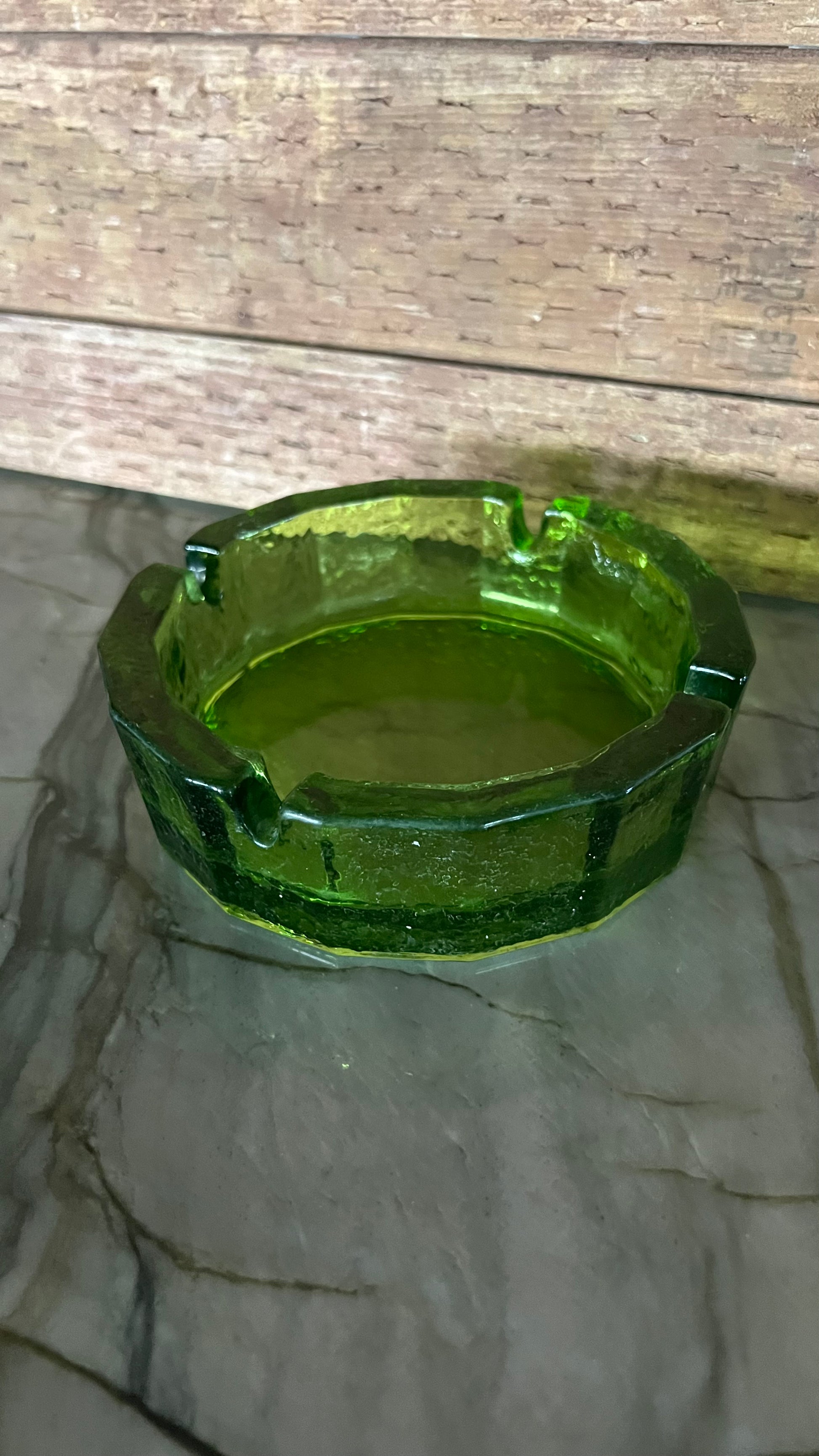 Vintage Blenko textured green glass ash tray. Super heavy! Measures 6” across, in excellent vintage condition. Likely from the 1960s-1970s. Hand blown beauty!