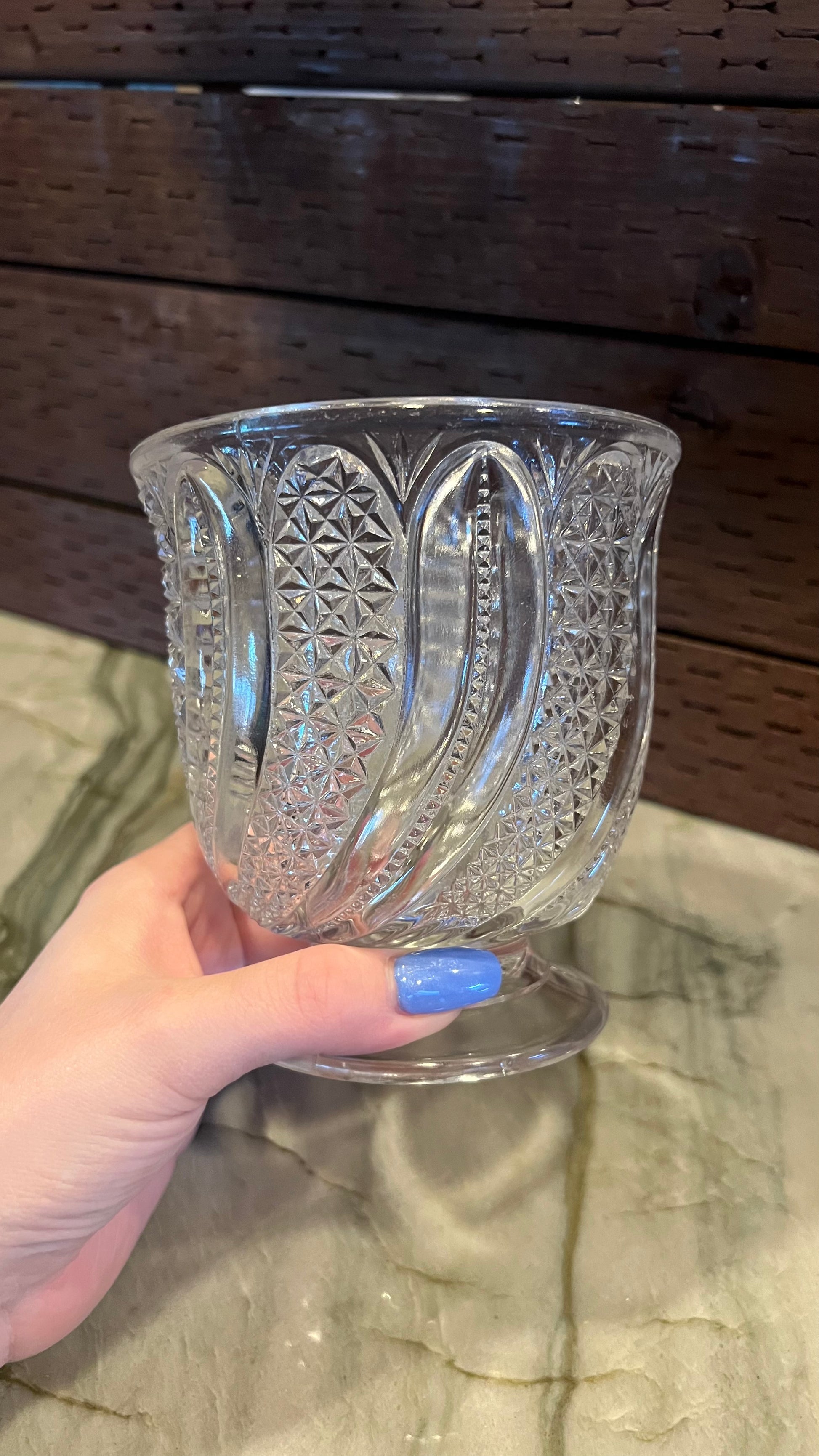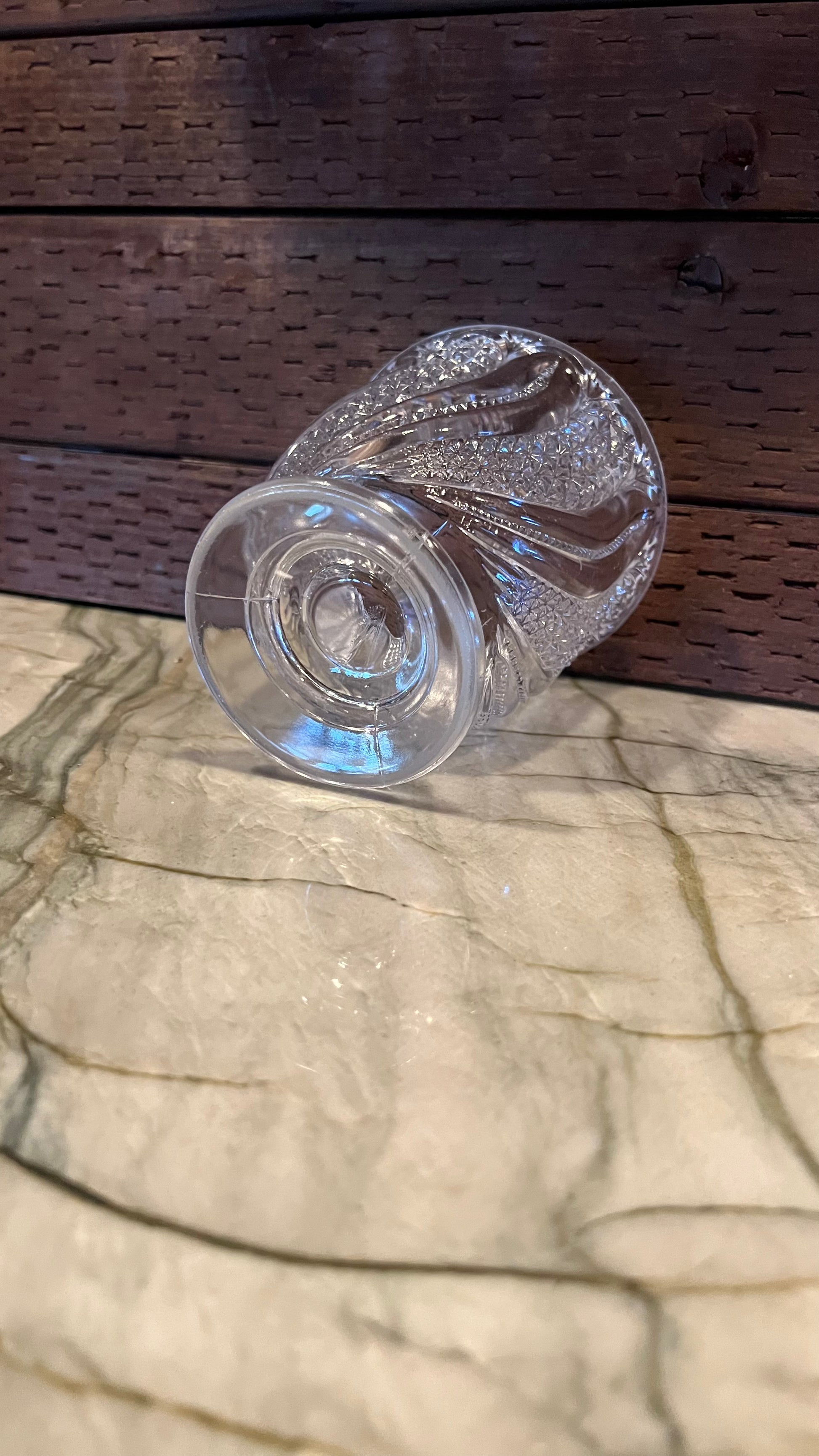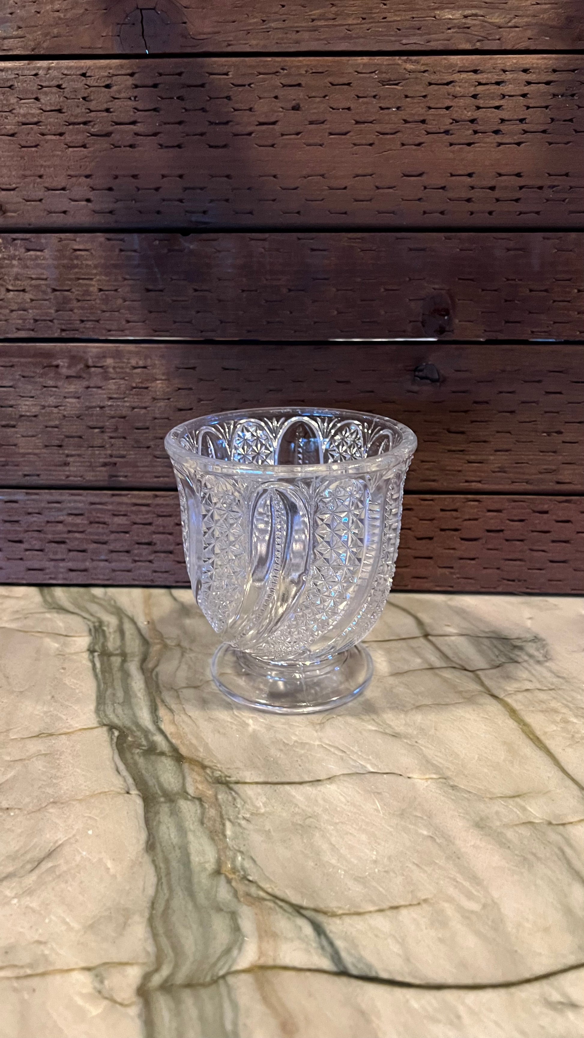 Antique EAPG (Early American Pattern Glass) McKee Doric Feather open sugar bowl/spoon holder. Beautiful clear glass, in excellent antique condition. From the 1930s. Measures 4.75” tall with a 3 1/8” diameter at the base. Truly beautiful piece!