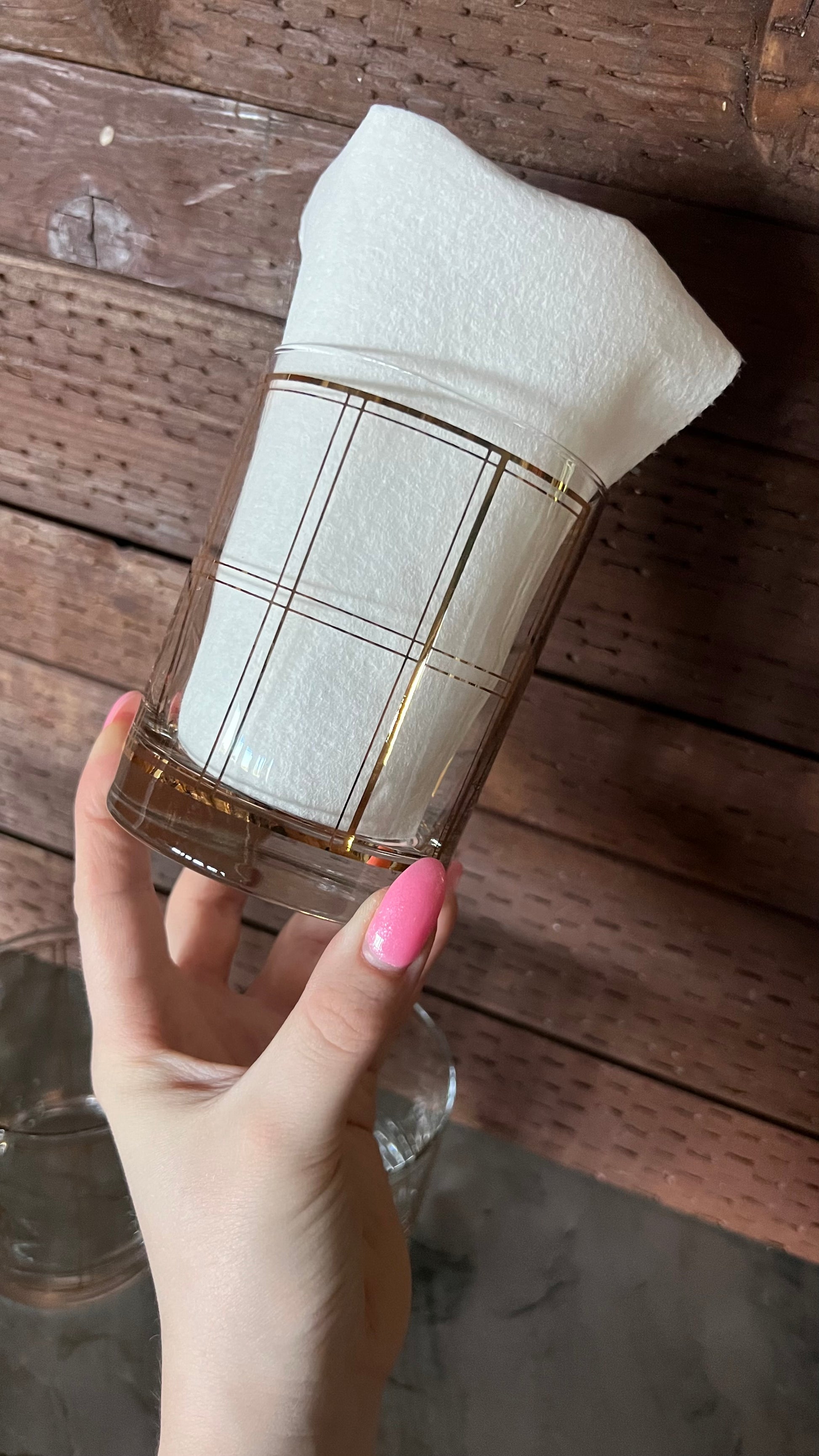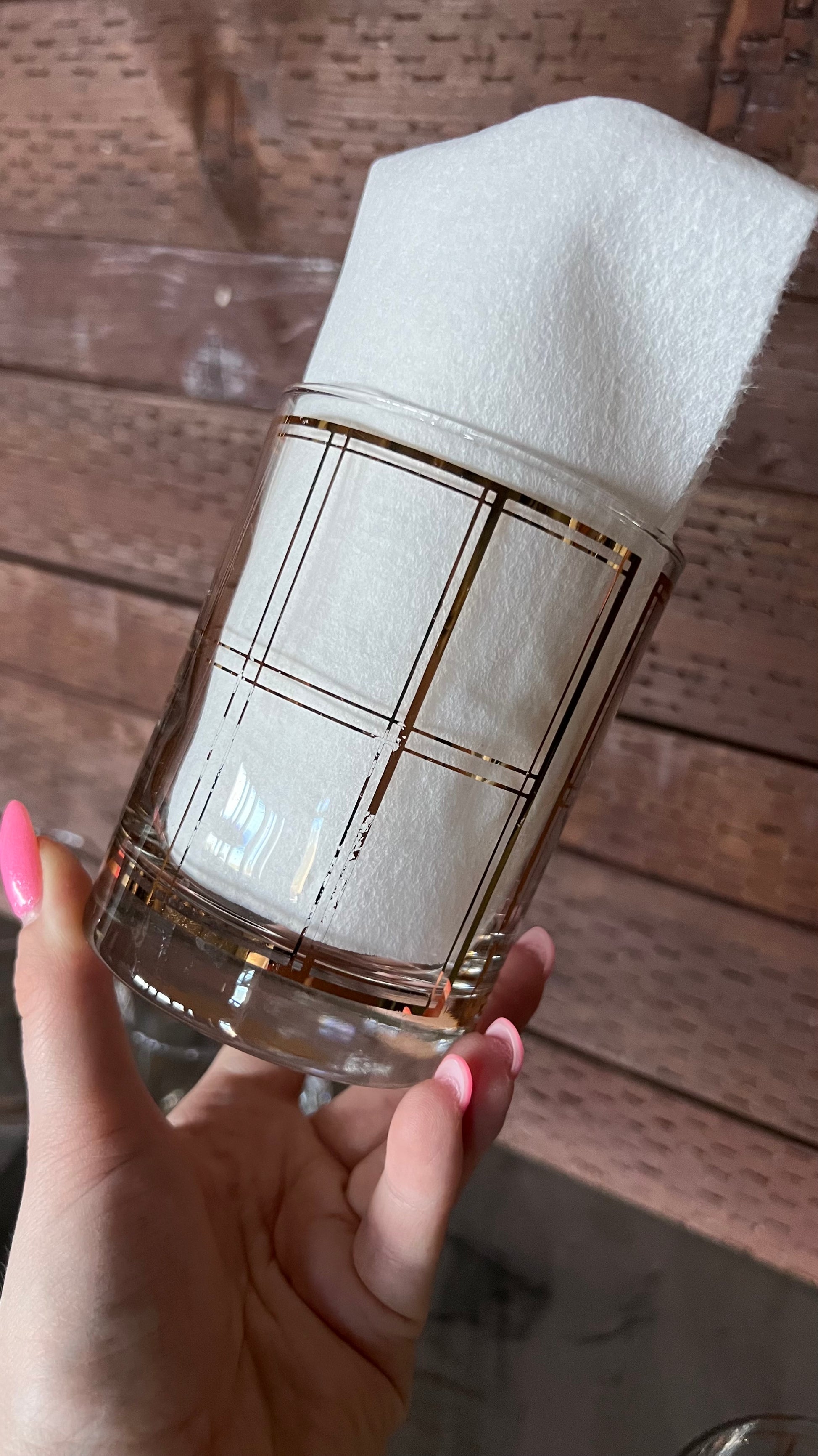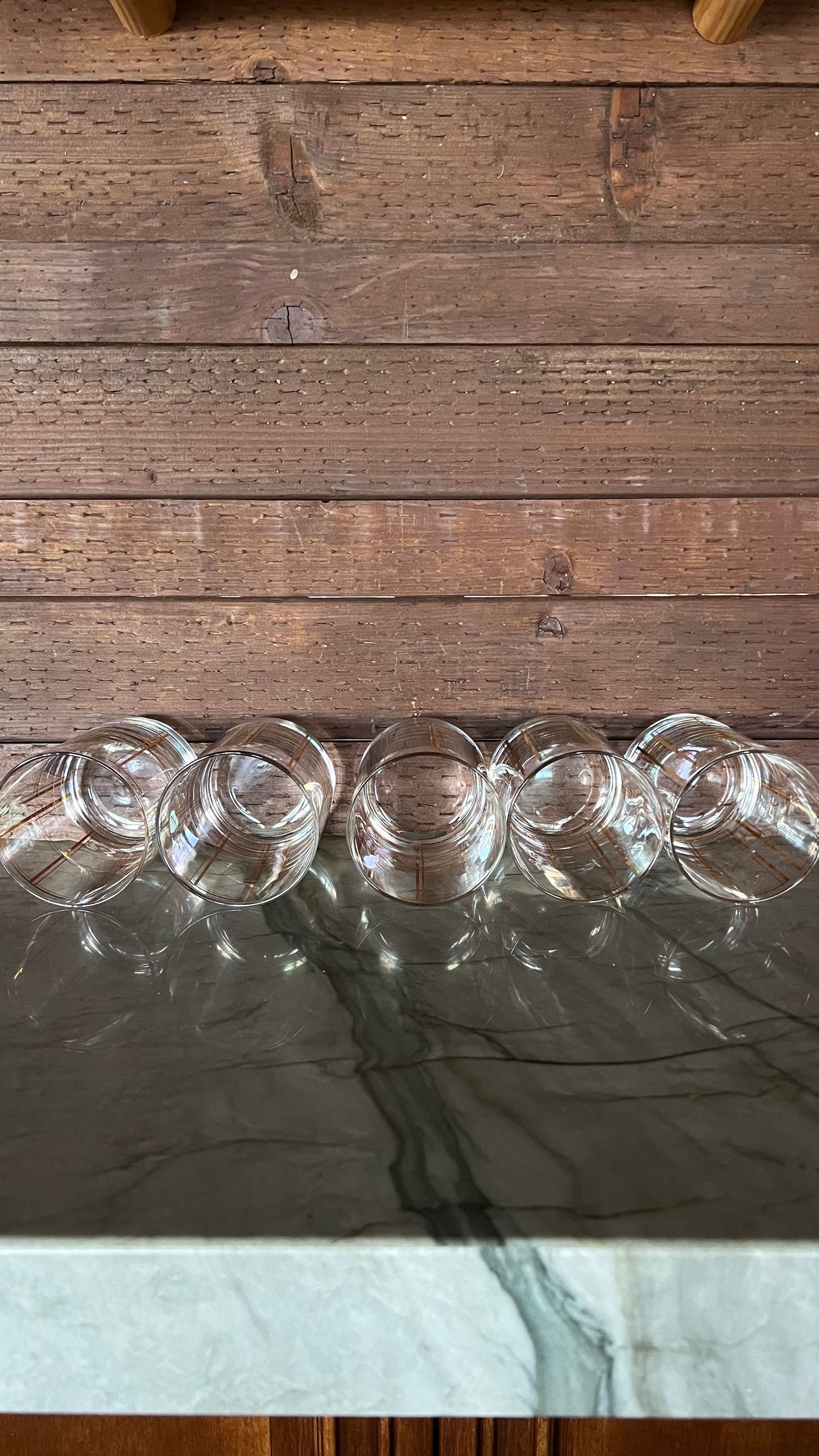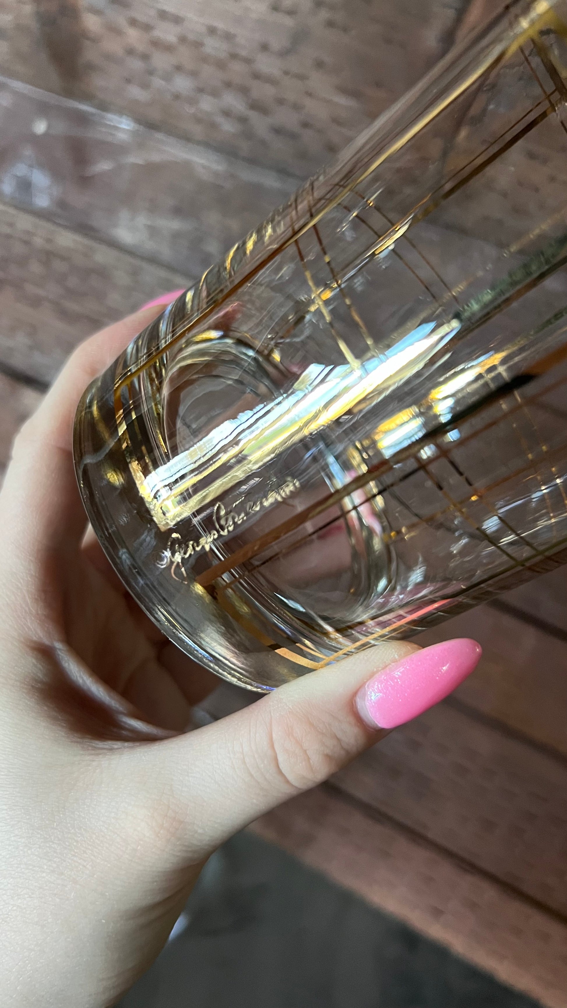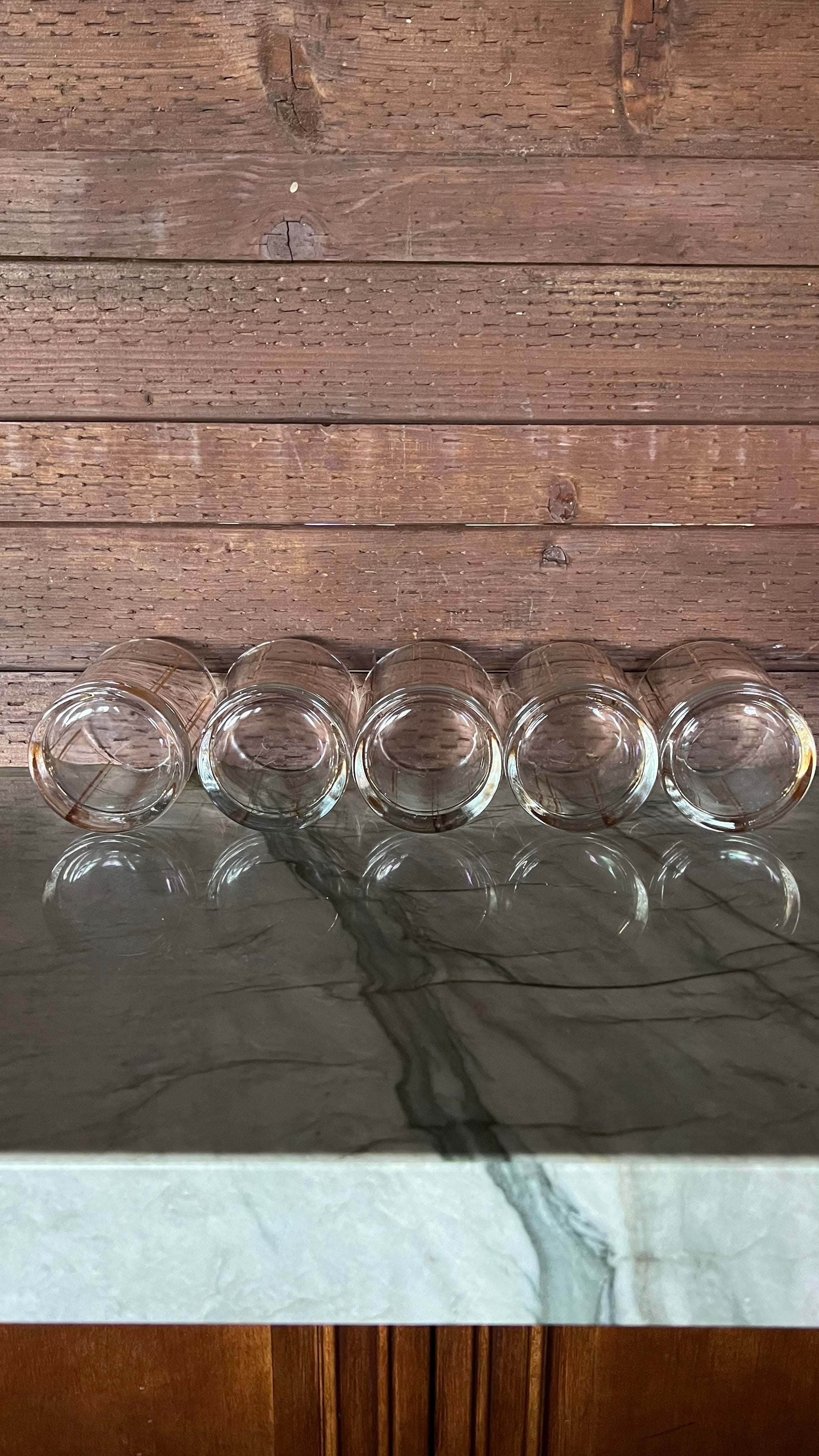Beautiful vintage mid century modern old fashioned glasses, made and signed by Georges Briard. Featuring 22K gold accents. Measures 4 1/8” tall and 3.25” in diameter. Overall, glasses are in very good vintage condition, some showing more signs of wear than others. An example of the best, and the most worn are photographed.