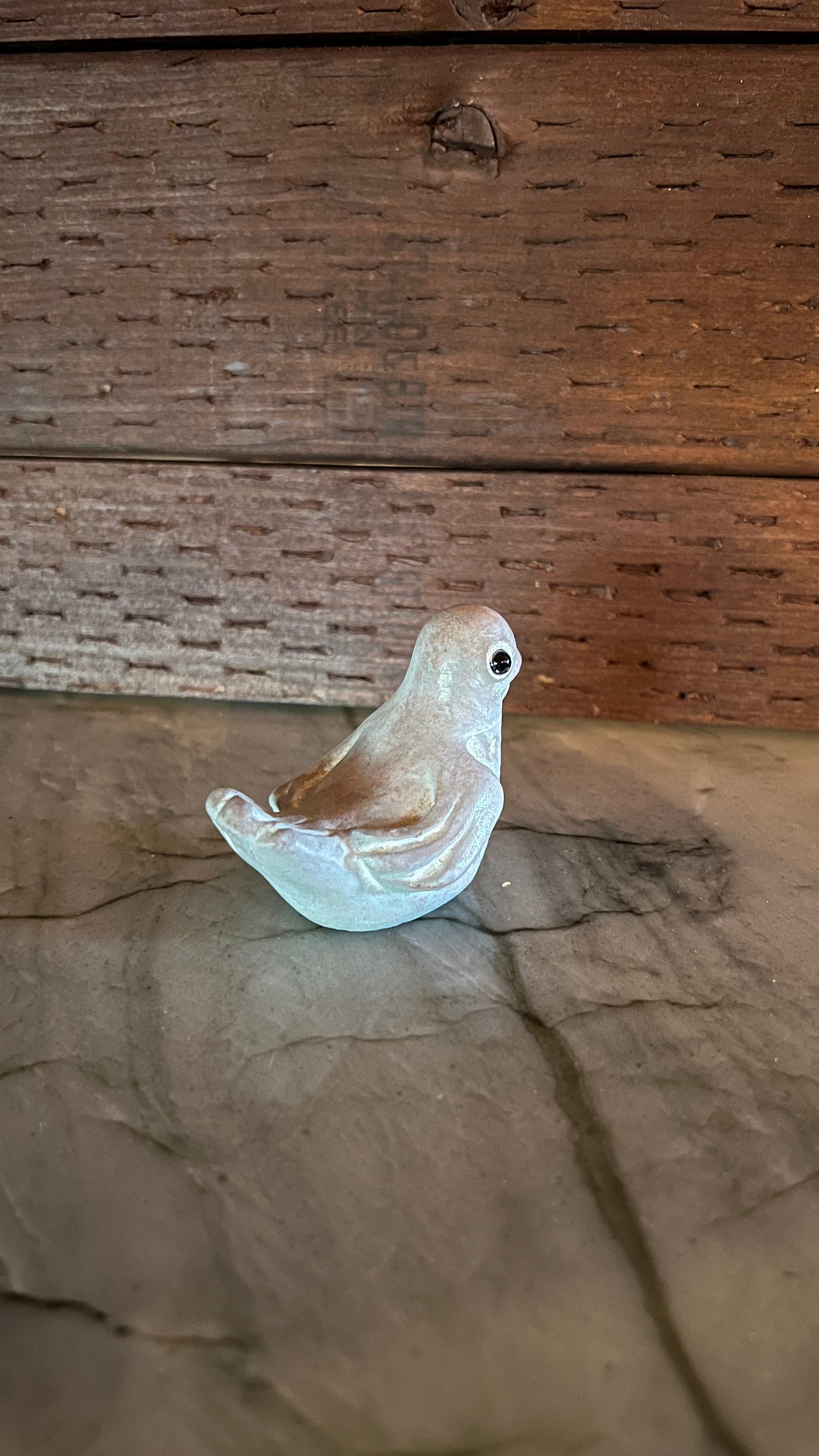 Isabel Bloom small bird figurine. Made of cast cement, this style is now retired. Signed by the artist on the bottom. Good condition, does a small chip on the beak, pictured. Measures 2” tall.