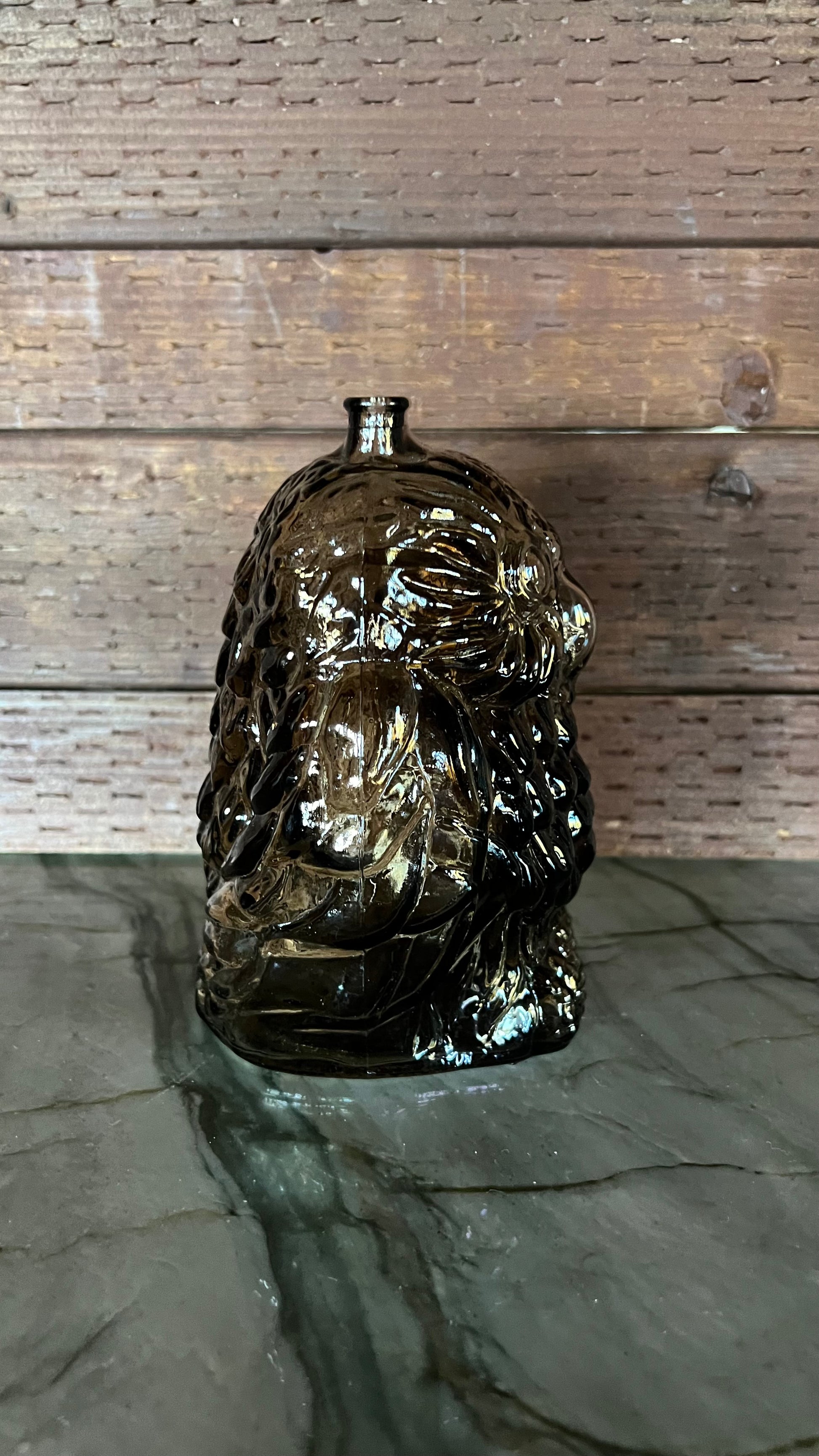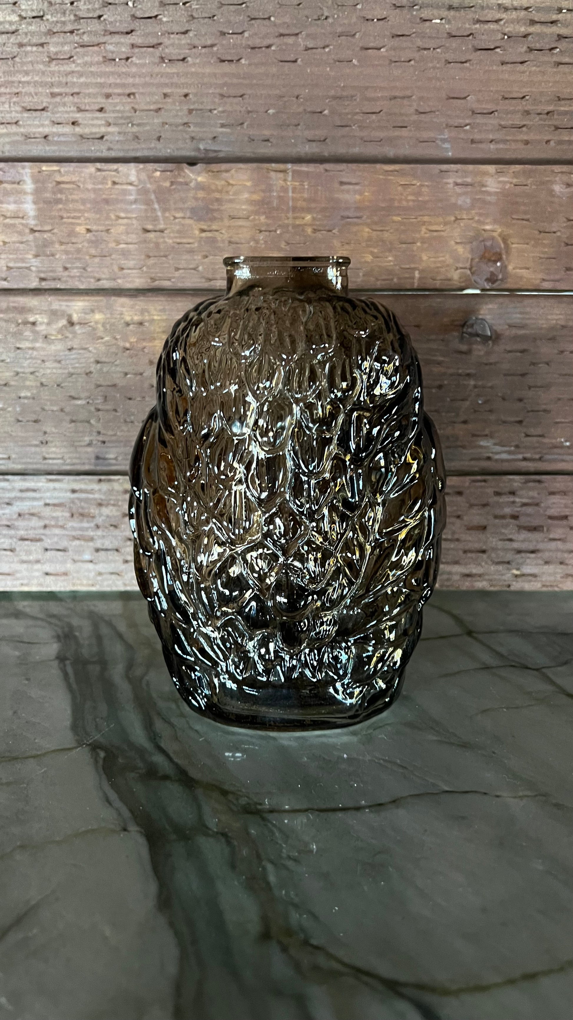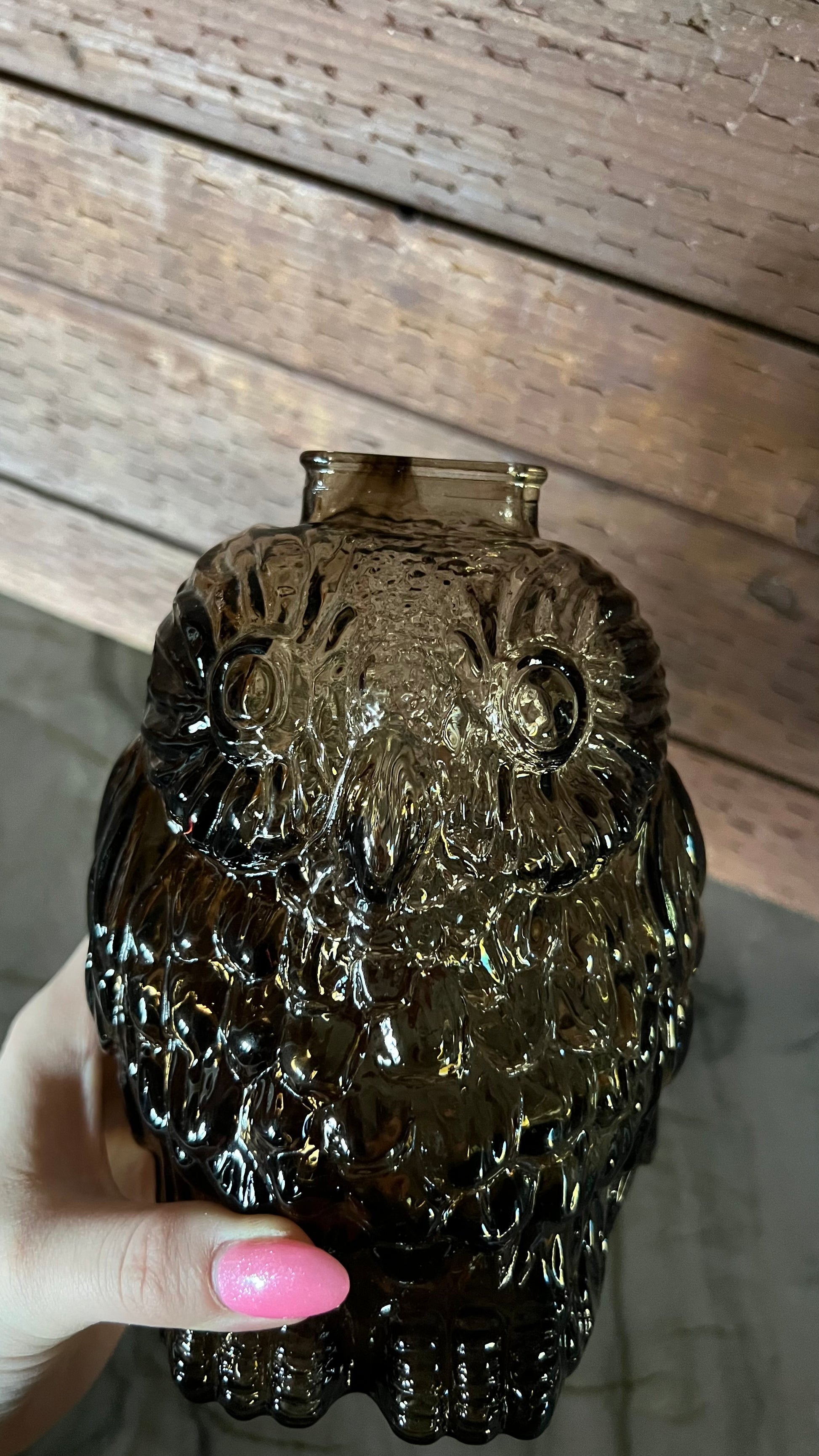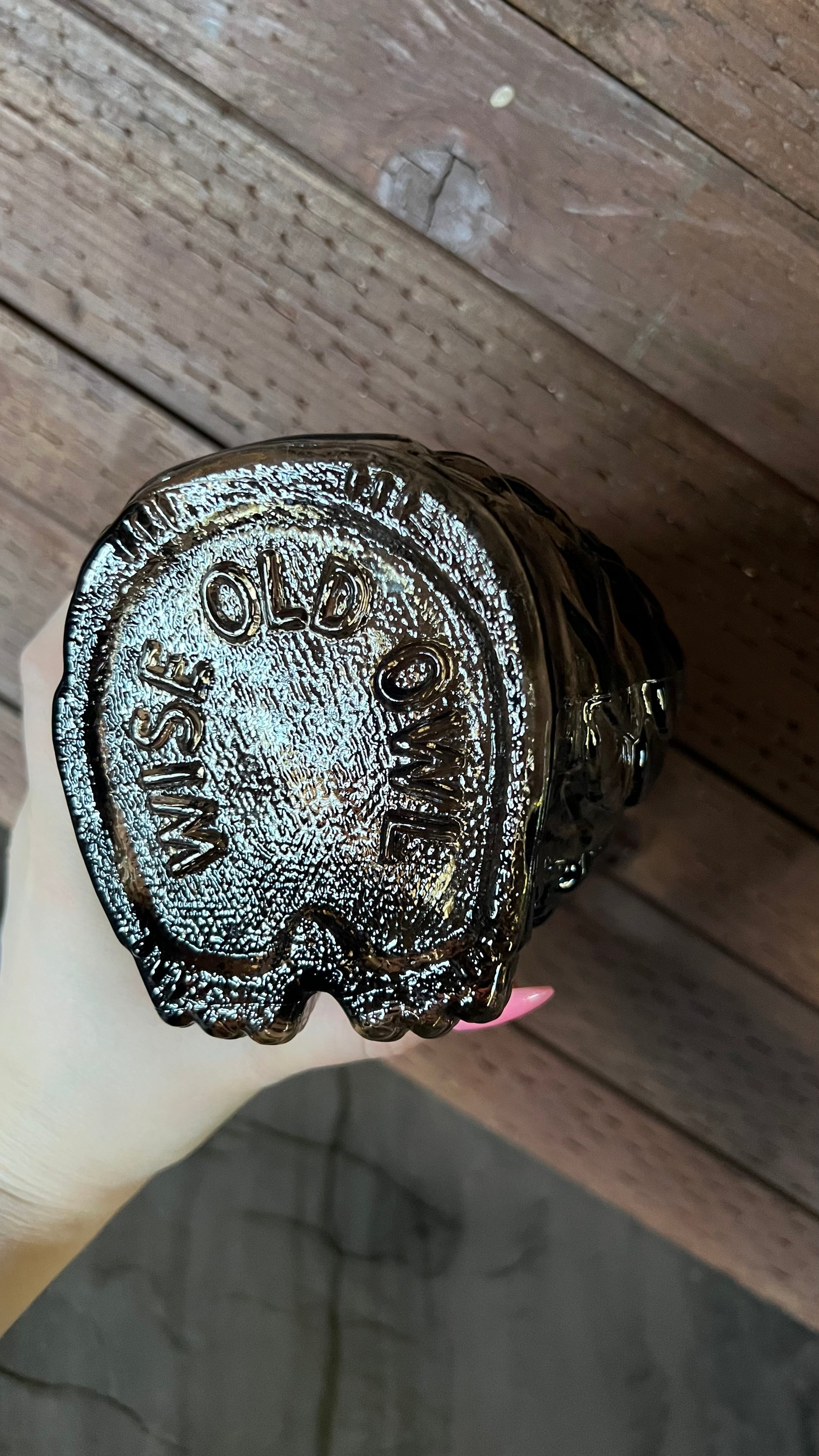 Beautiful Libbey Wise Old Owl coin bank! This is in excellent vintage condition with no signs of wear. There is slight discoloration at the top, photographed, but appears to be from production. It measures 6.25” tall and 4.5” at the widest point. Rich brown colored glass.
