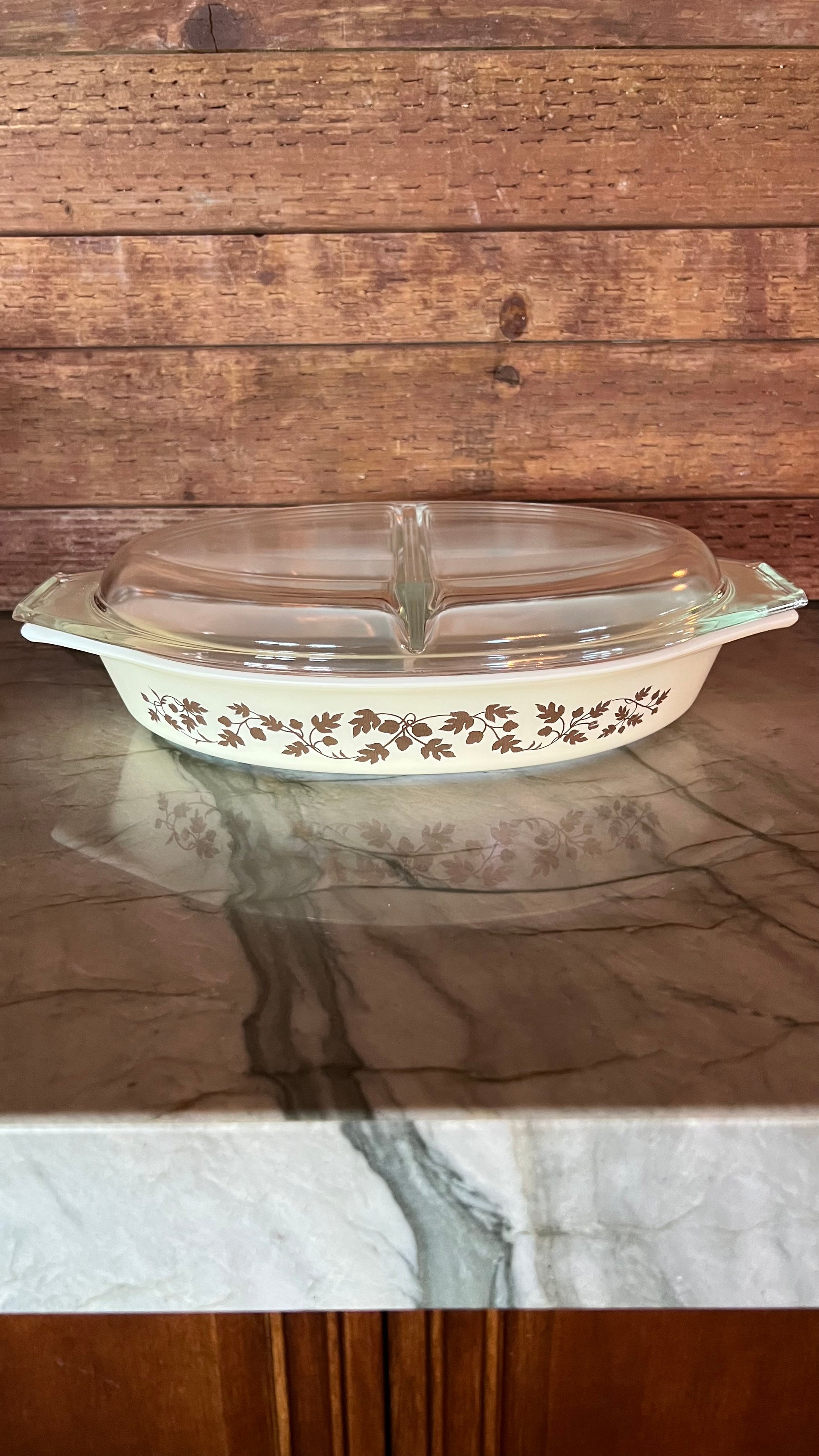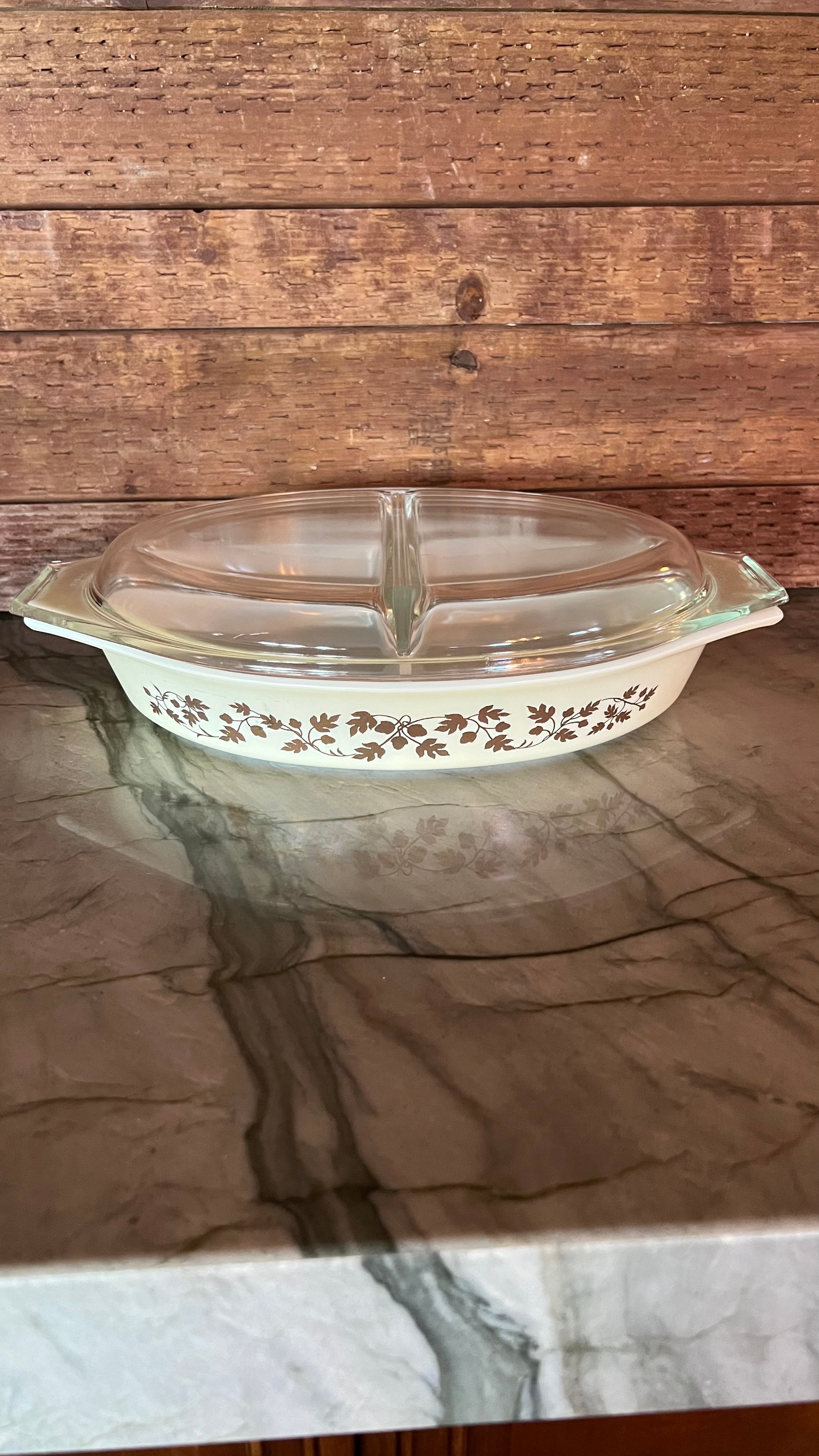 Pyrex Golden Acorn Divided Casserole Dish