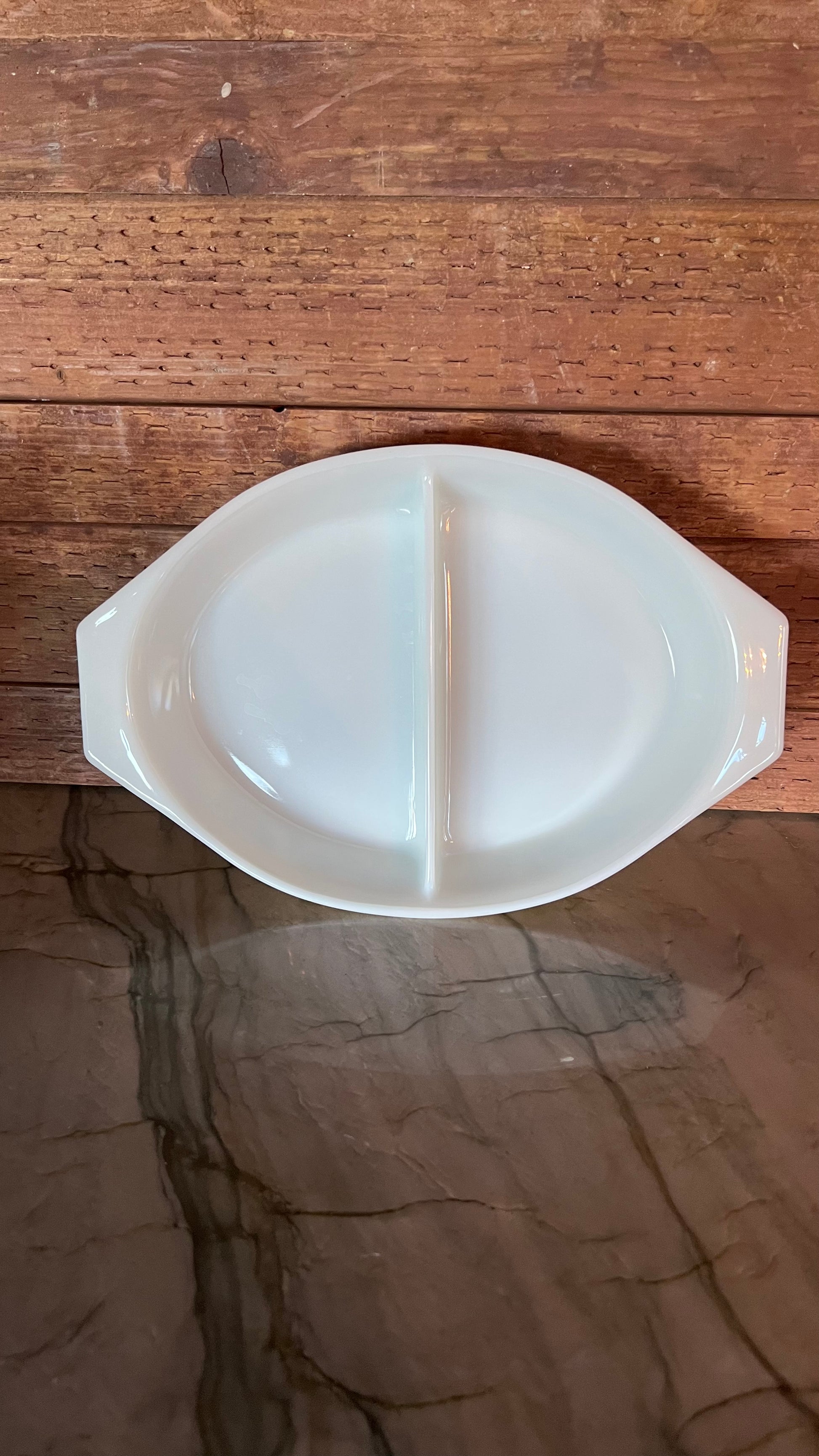 Beautiful Pyrex Golden Acorn divided casserole dish, 1.5 quarts. This dish is in excellent vintage condition, showing very minimal signs of surface wear. Incredible piece!