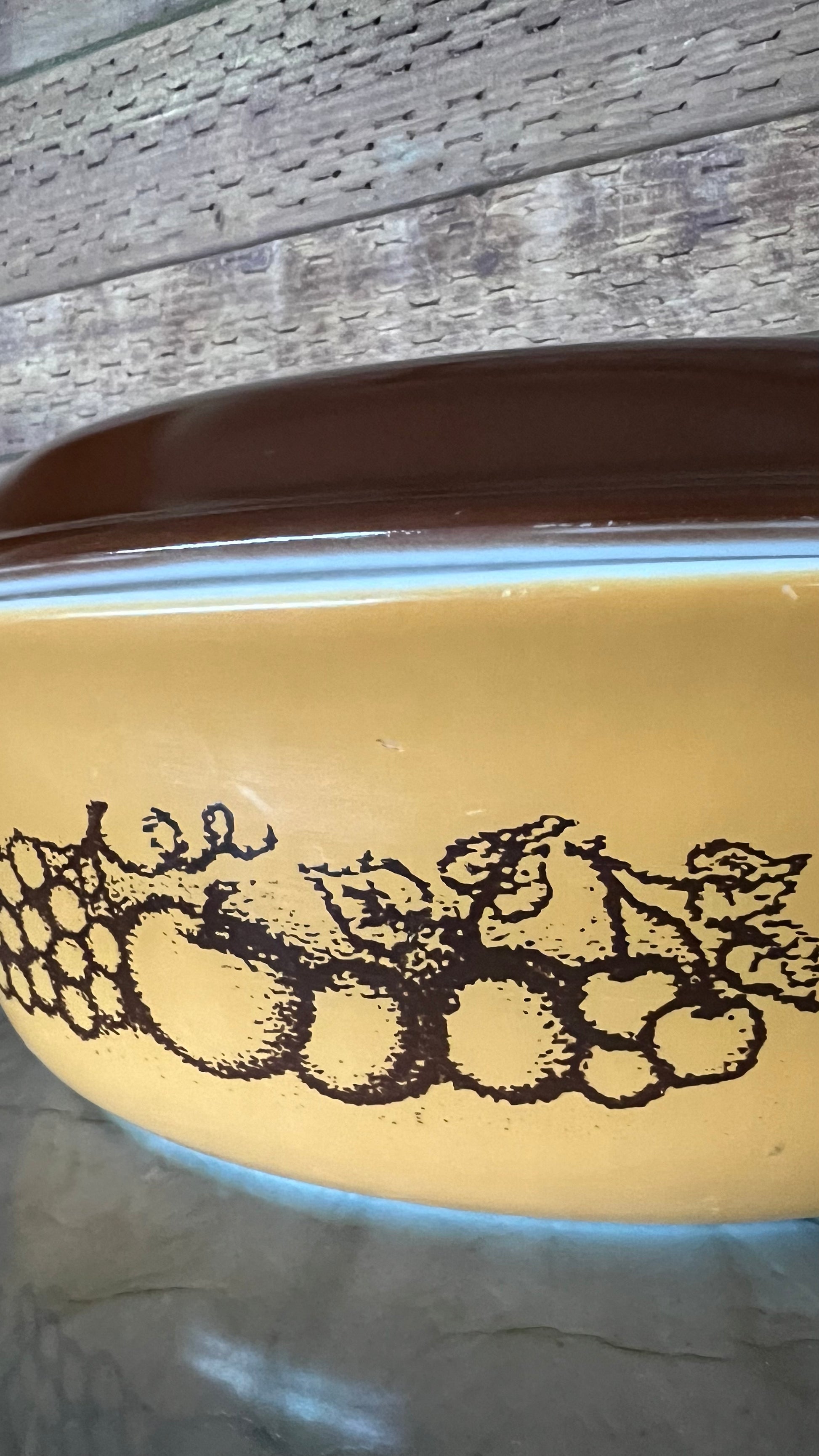Beautiful vintage Pyrex Old Orchard covered casserole dish #043, with lid. This dish is in excellent vintage condition, with a glossy finish. No dishwasher damage! Very minimal signs of wear, photographed.