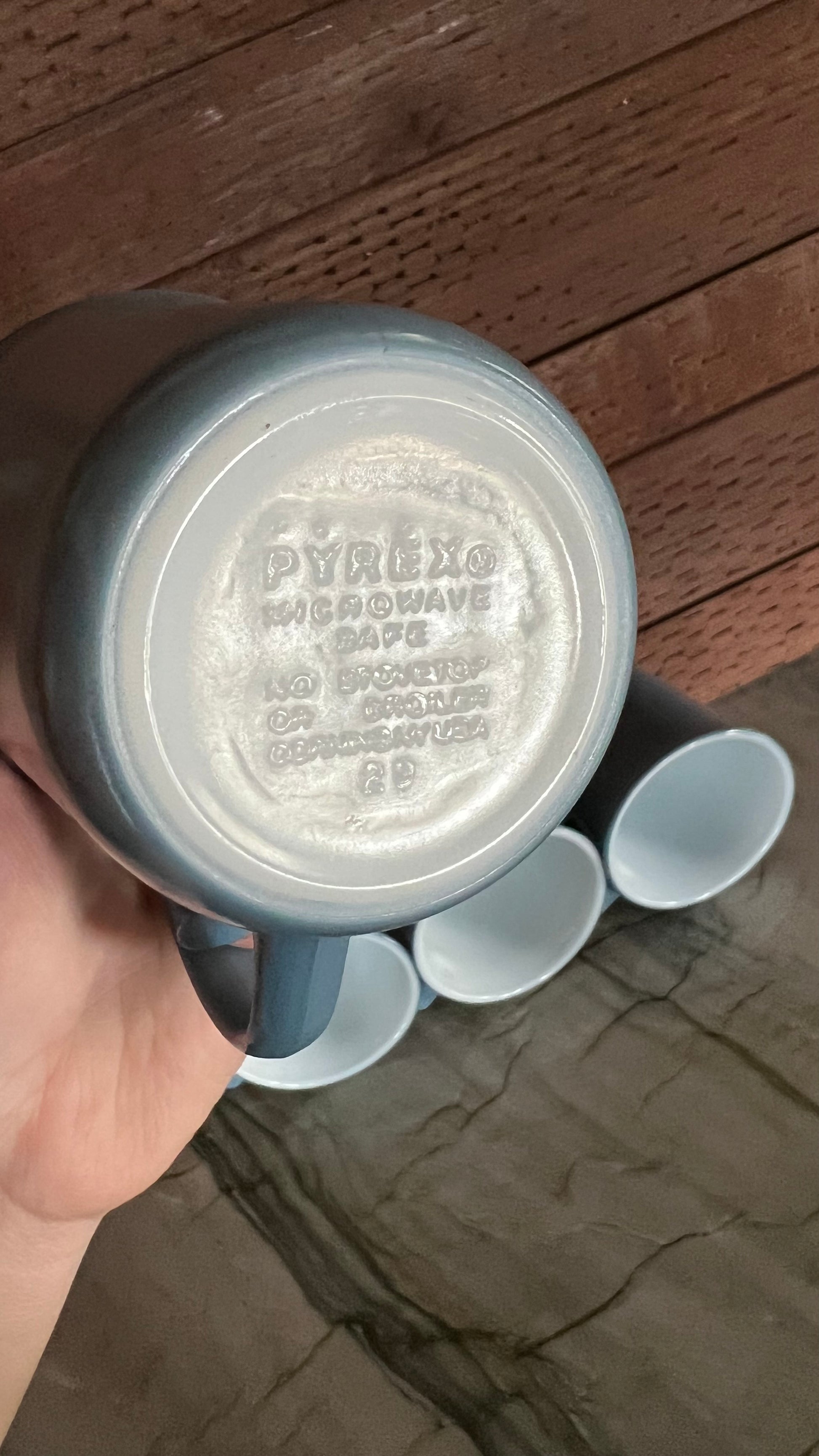 Vintage Pyrex mugs! Four available, each sold separately. All mugs are in excellent vintage condition, with no chips, cracks or dishwasher damage. Slate blue in color.
