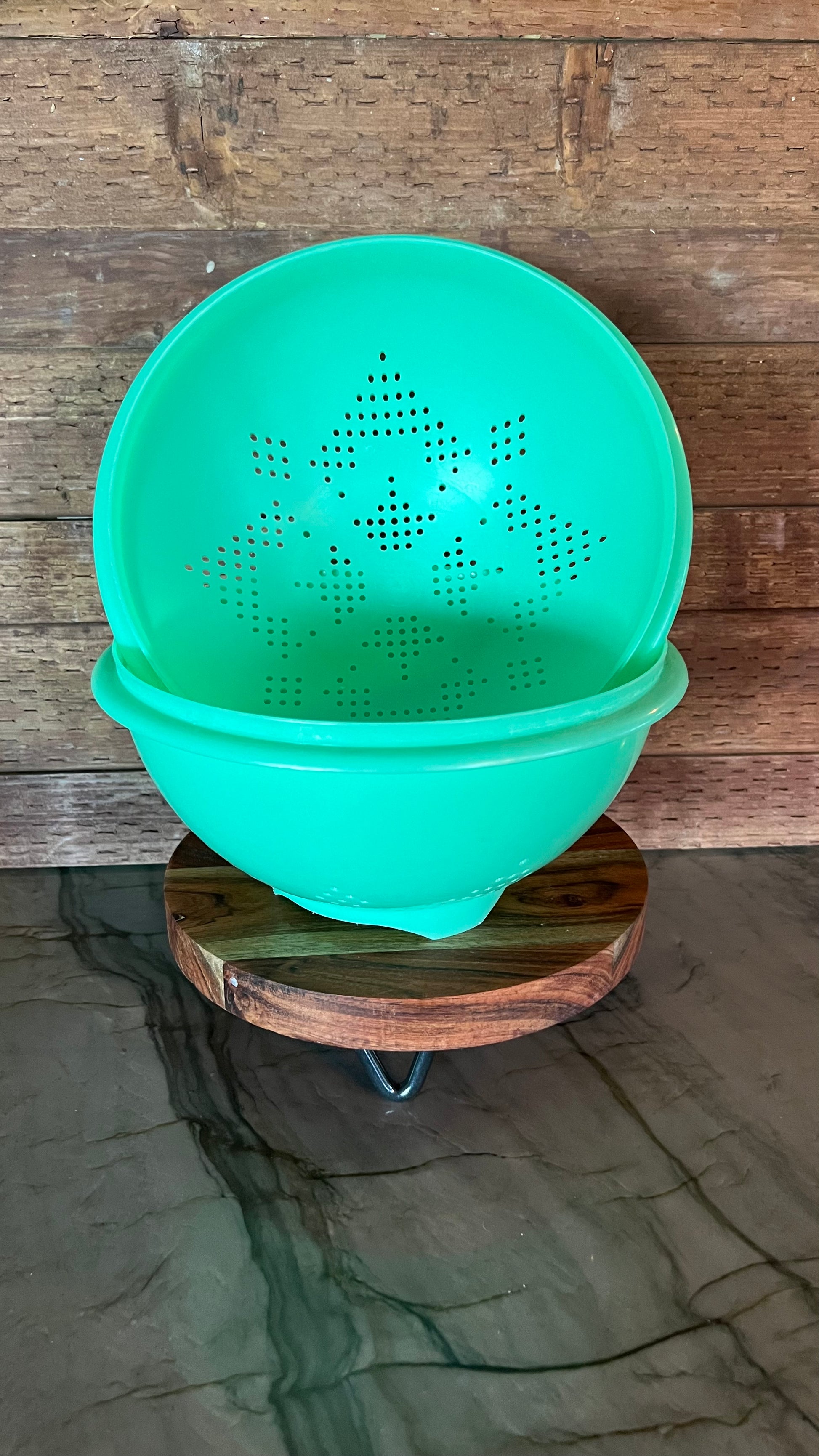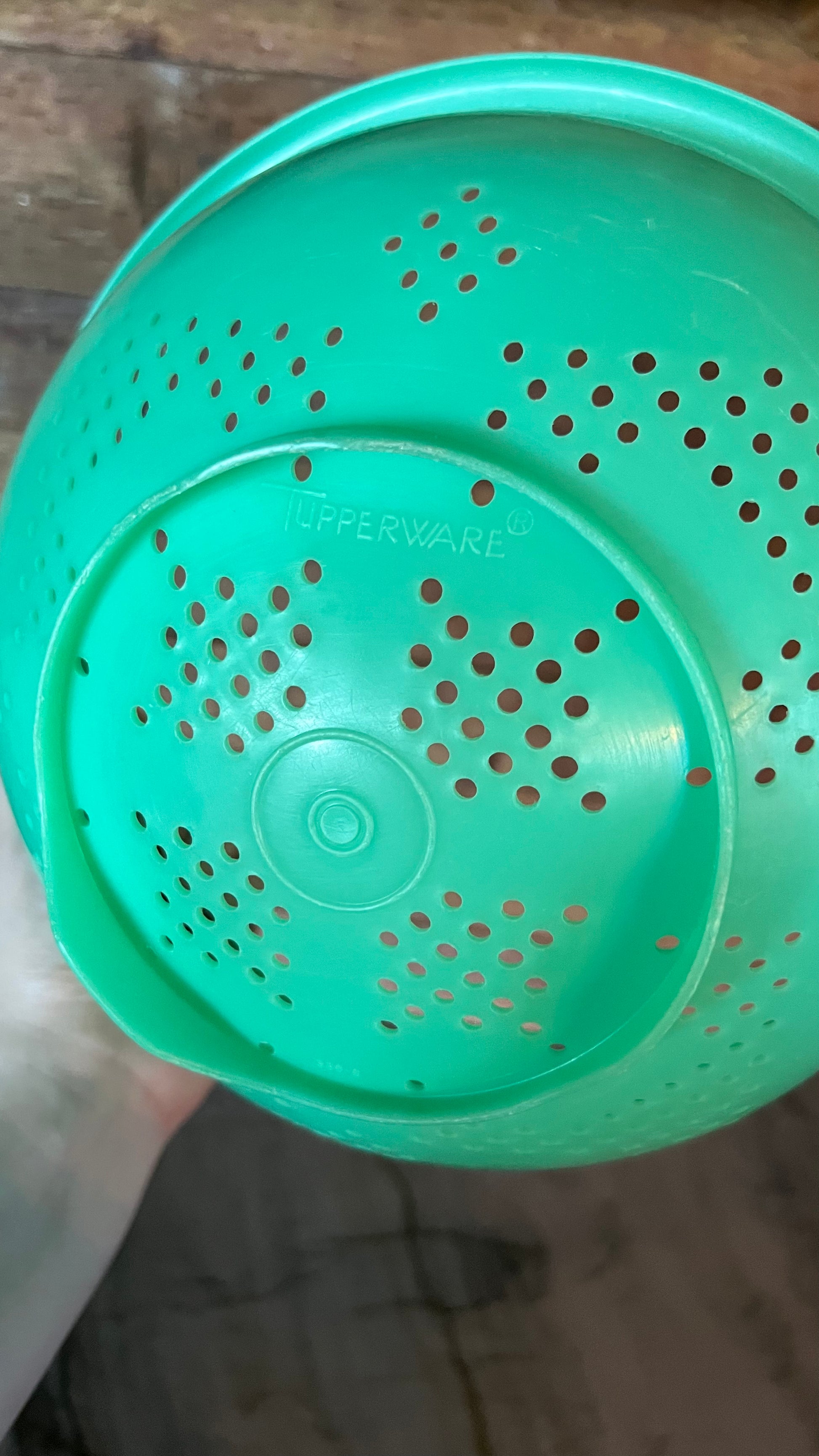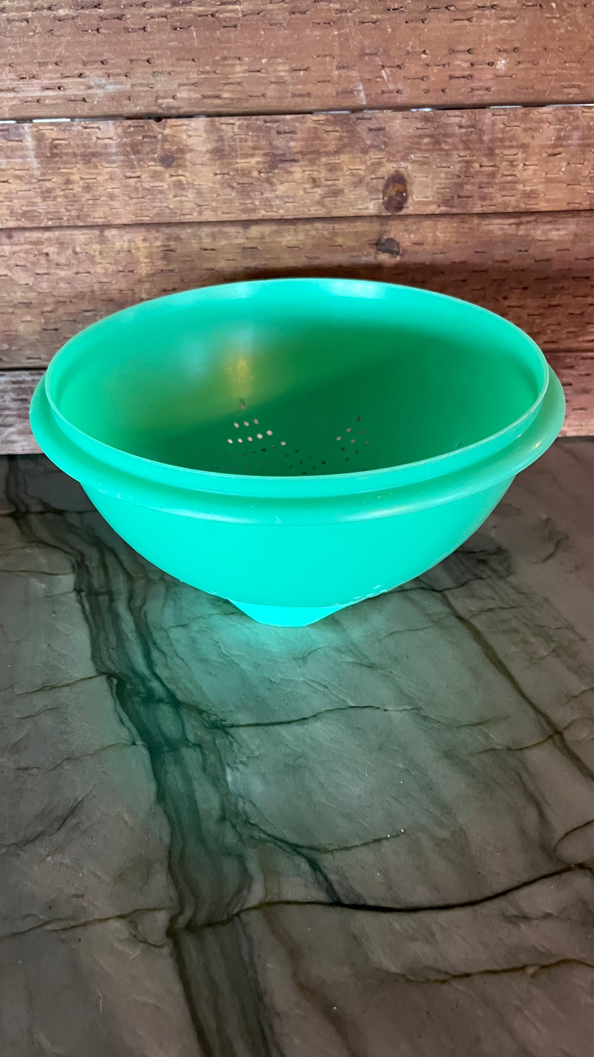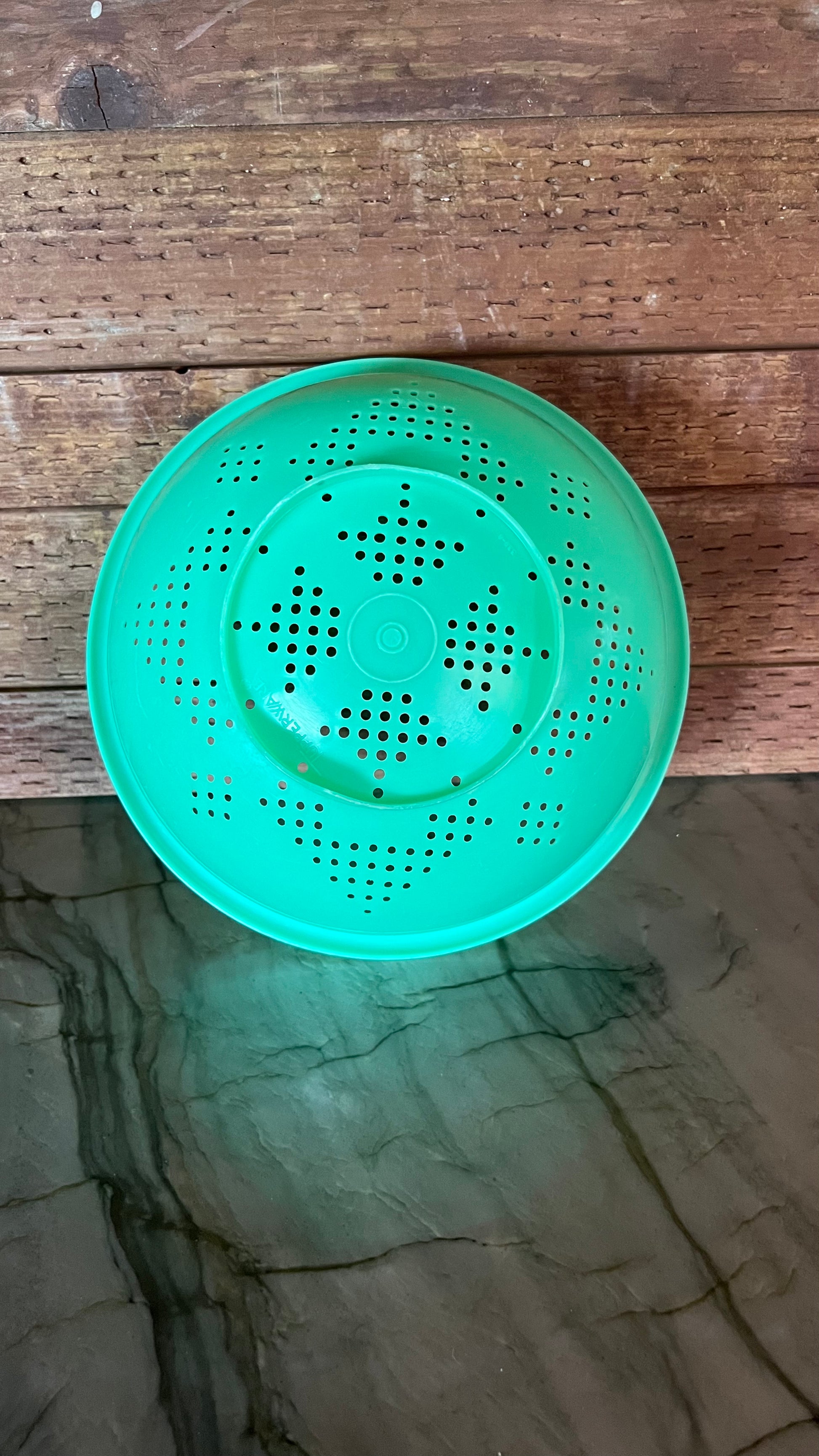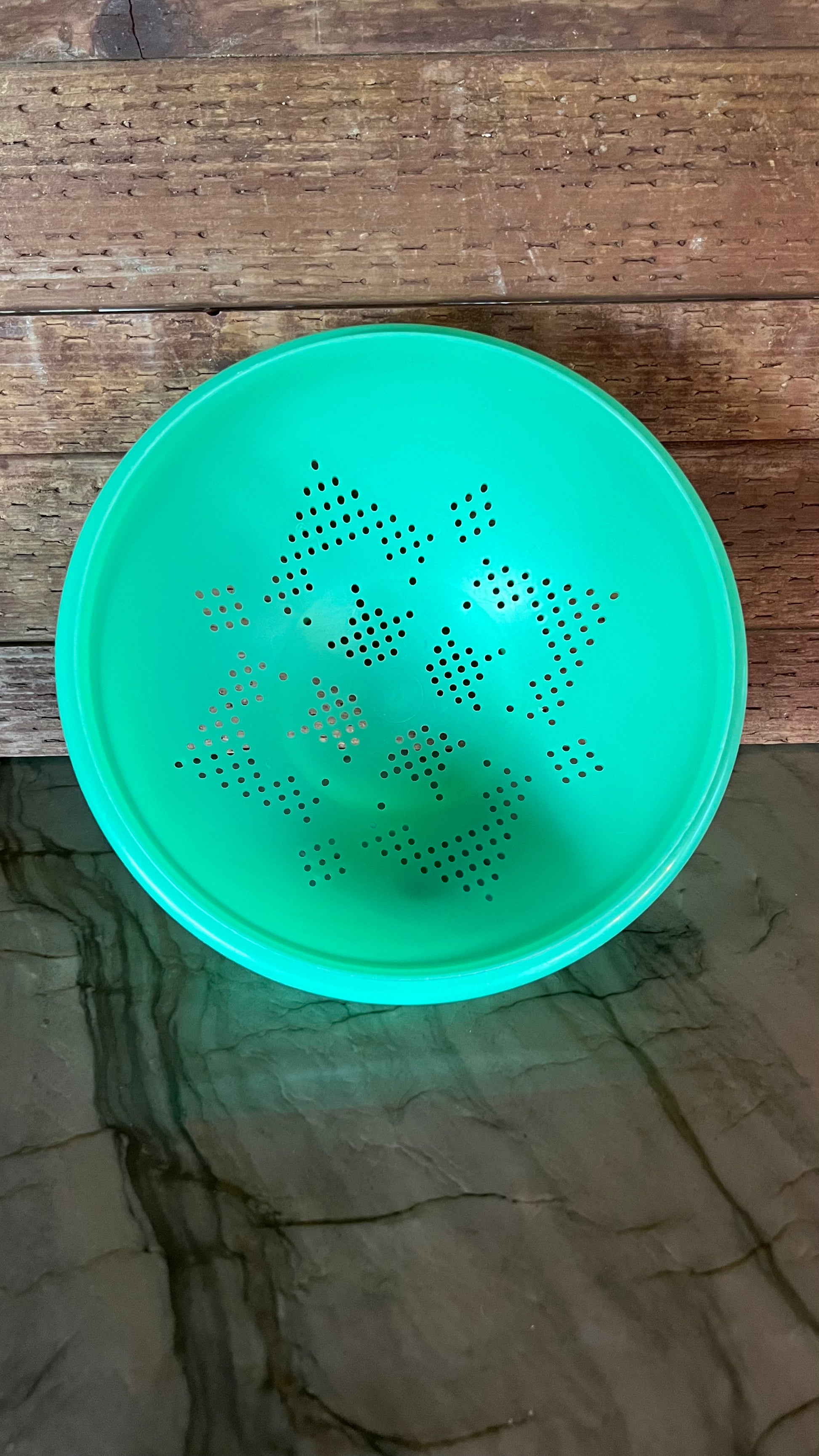Vintage jadeite green Tupperware colander. Stamped 339-8 on the bottom. Excellent vintage condition! Measures 9.75” in diameter at the top, and 5” tall. Two in stock, sold separately.