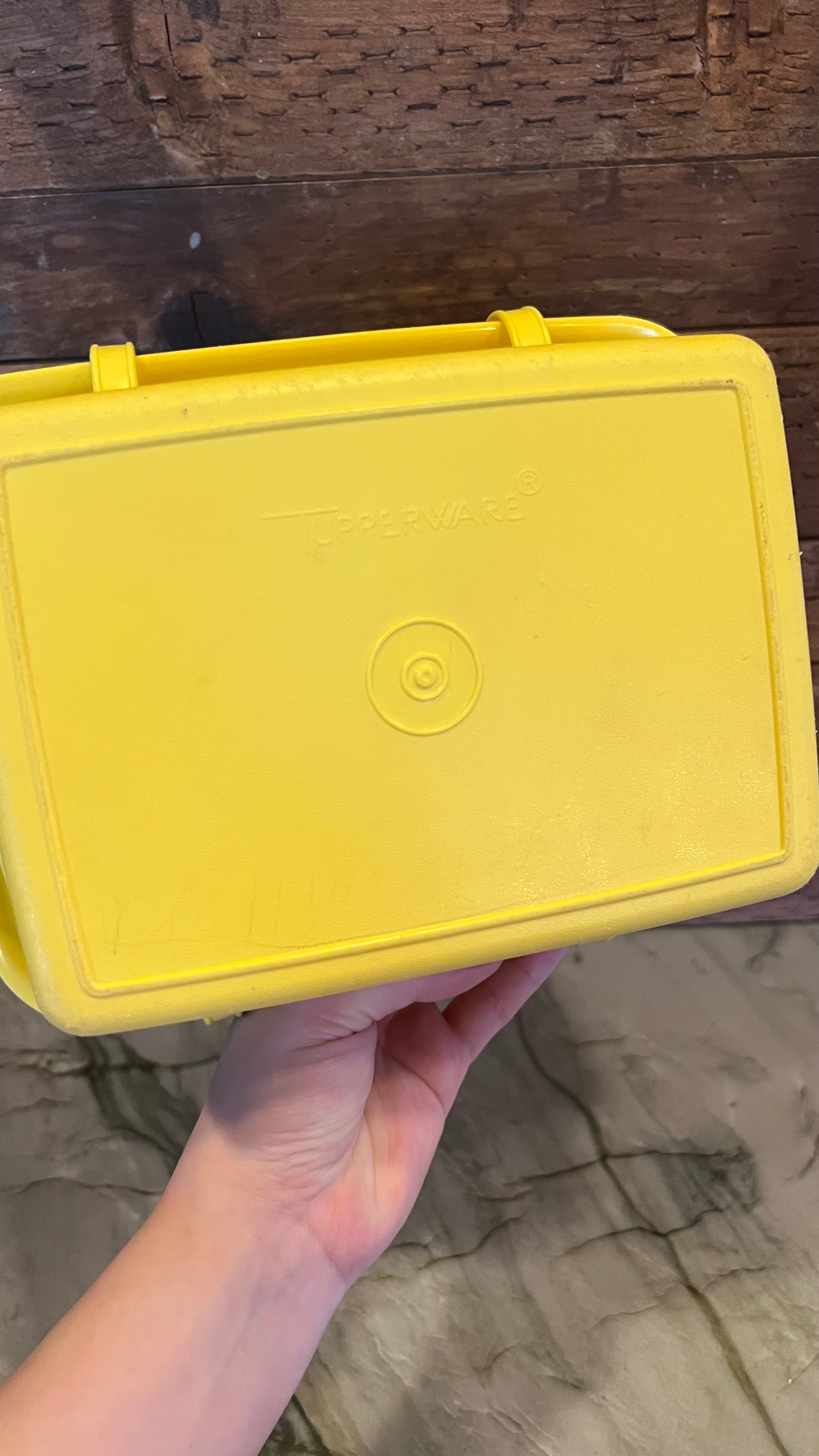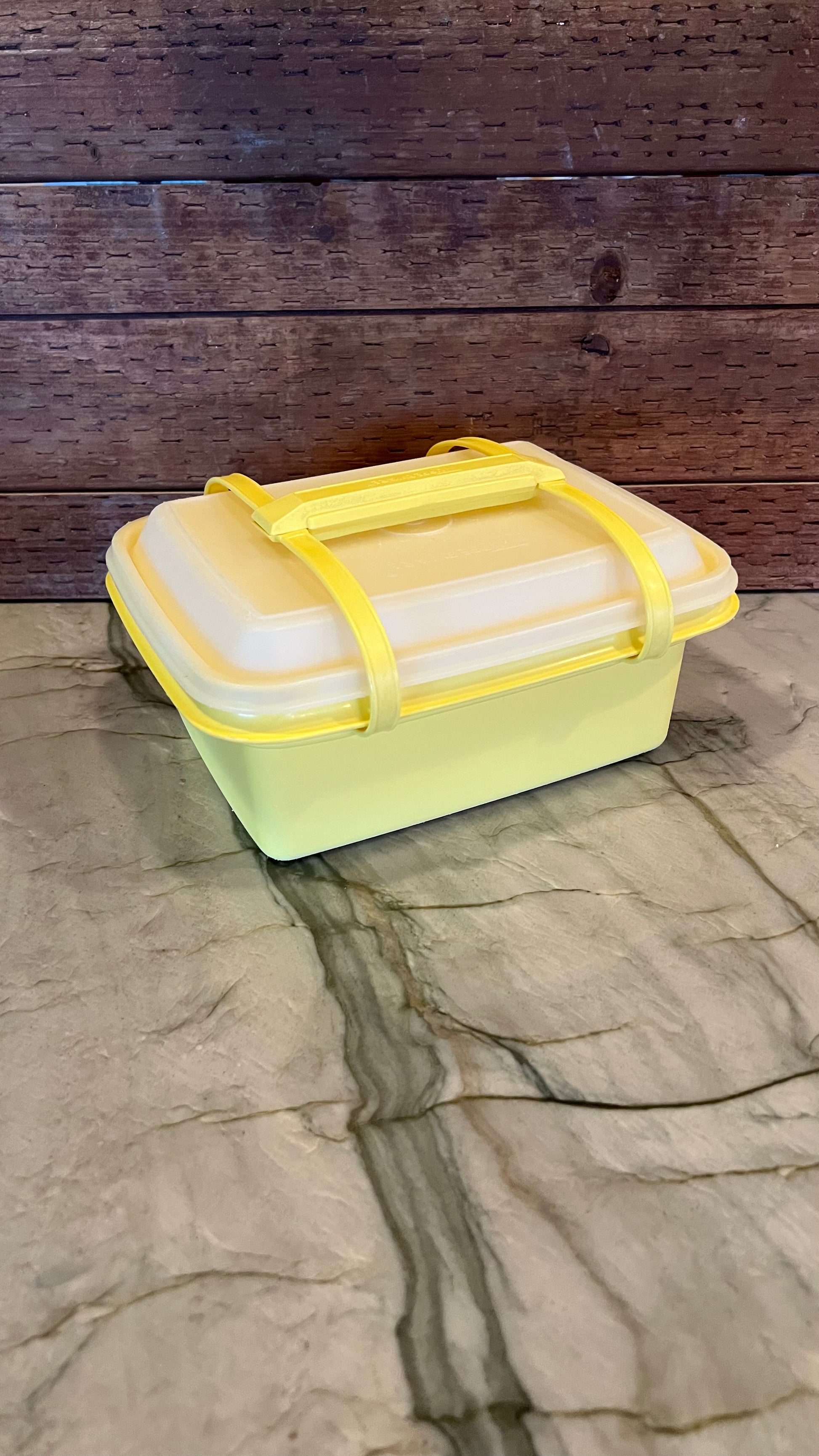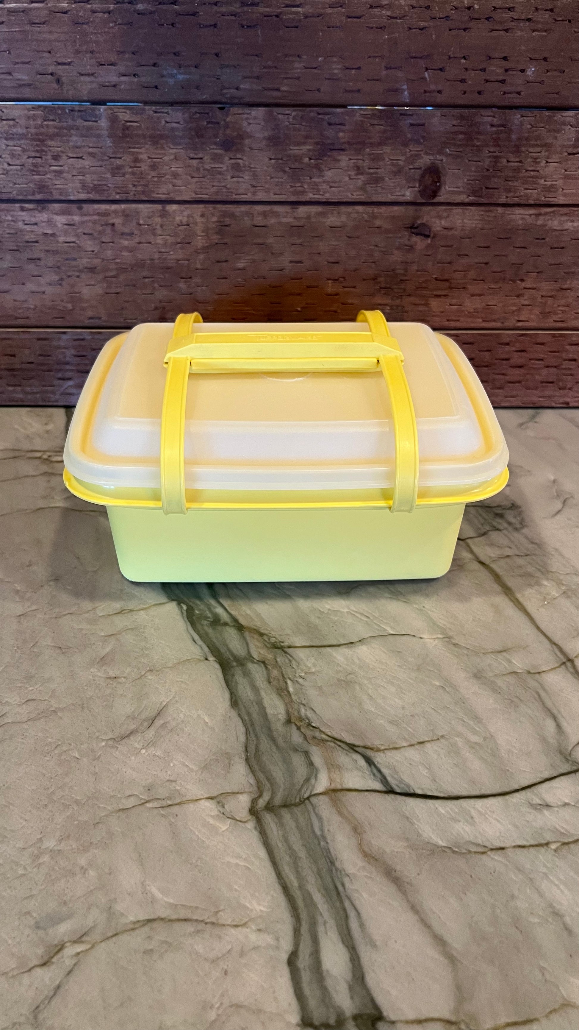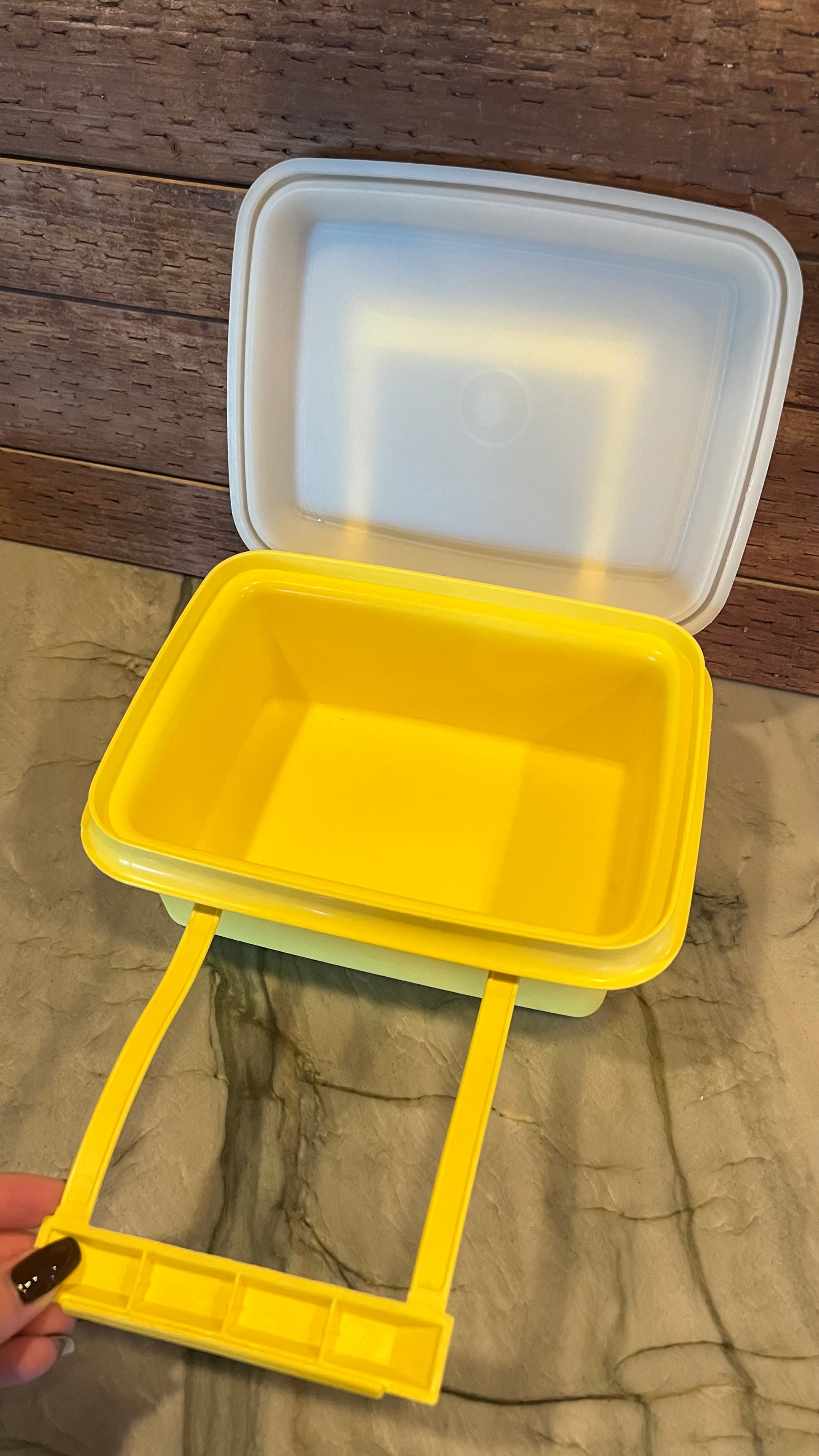 Vintage Tupperware Pack and Carry lunch box! Stamped 1322-4 on the inside of the handle. Three-piece set - base, lid, and removable handles. Good vintage condition. Measures approximately 9.5” by 7.5” by 4.5”. Adorable piece!