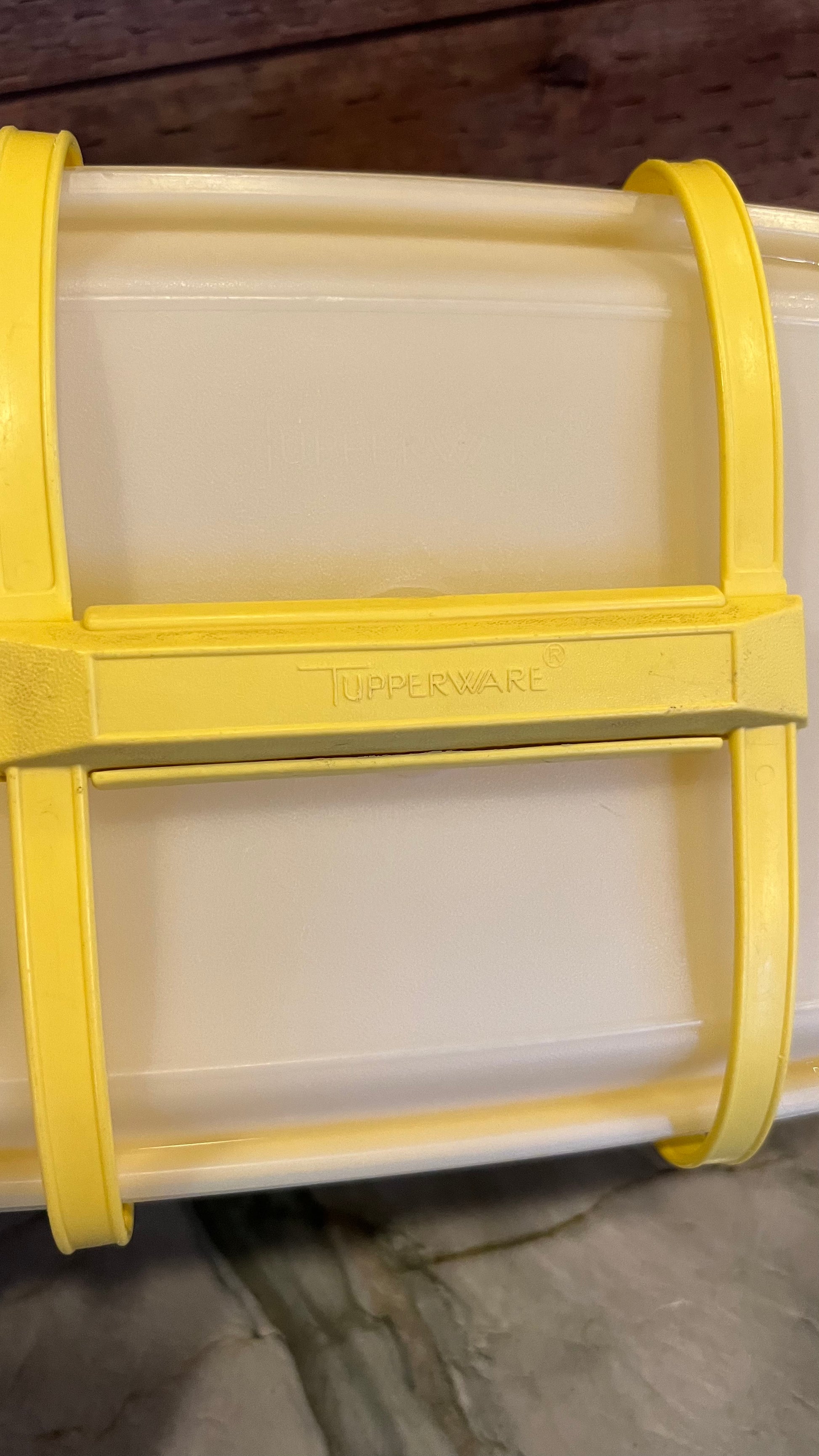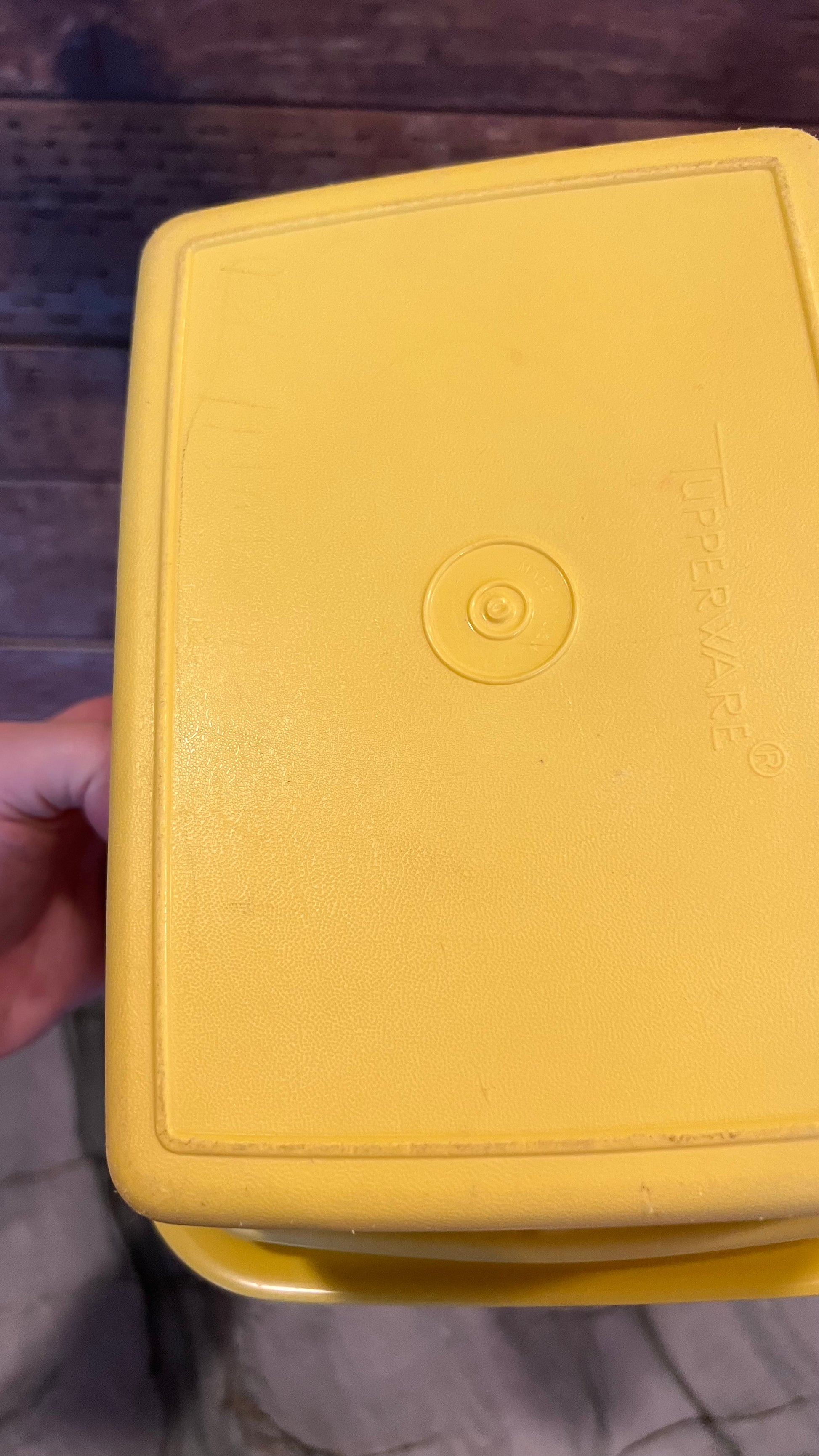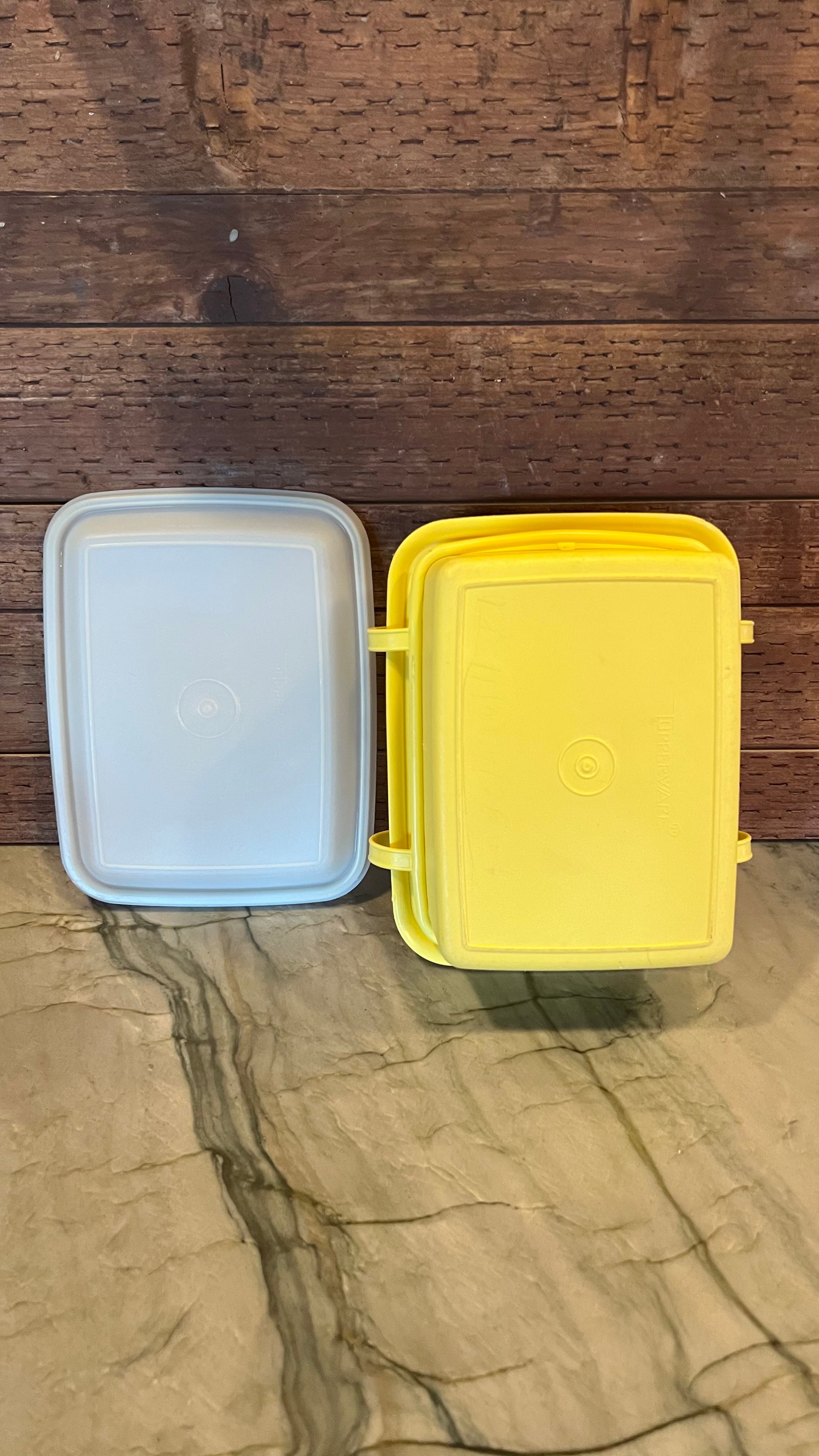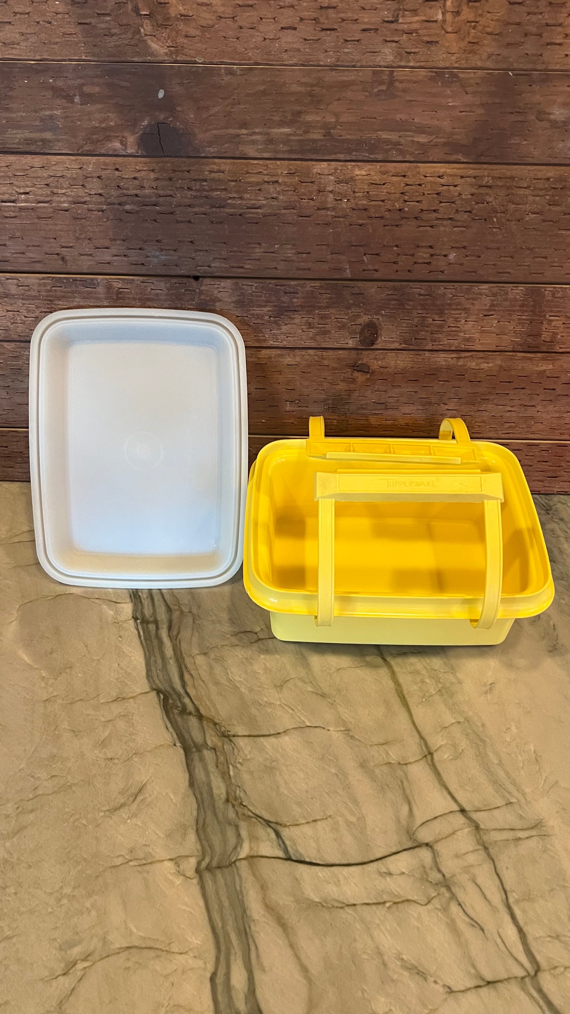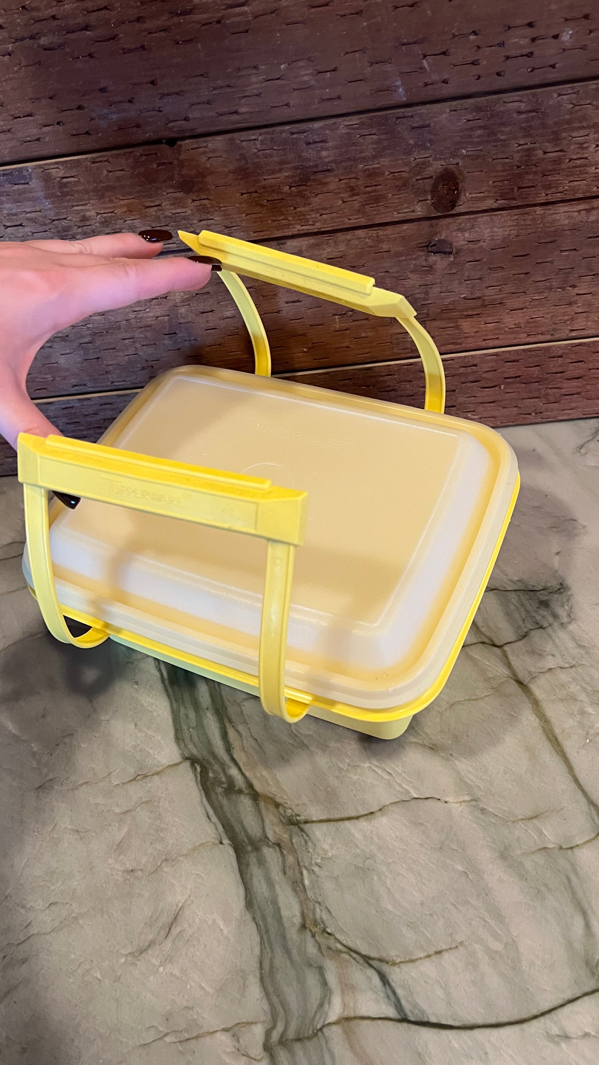 Vintage Tupperware Pack and Carry lunch box! Stamped 1322-4 on the inside of the handle. Three-piece set - base, lid, and removable handles. Good vintage condition. Measures approximately 9.5” by 7.5” by 4.5”. Adorable piece!