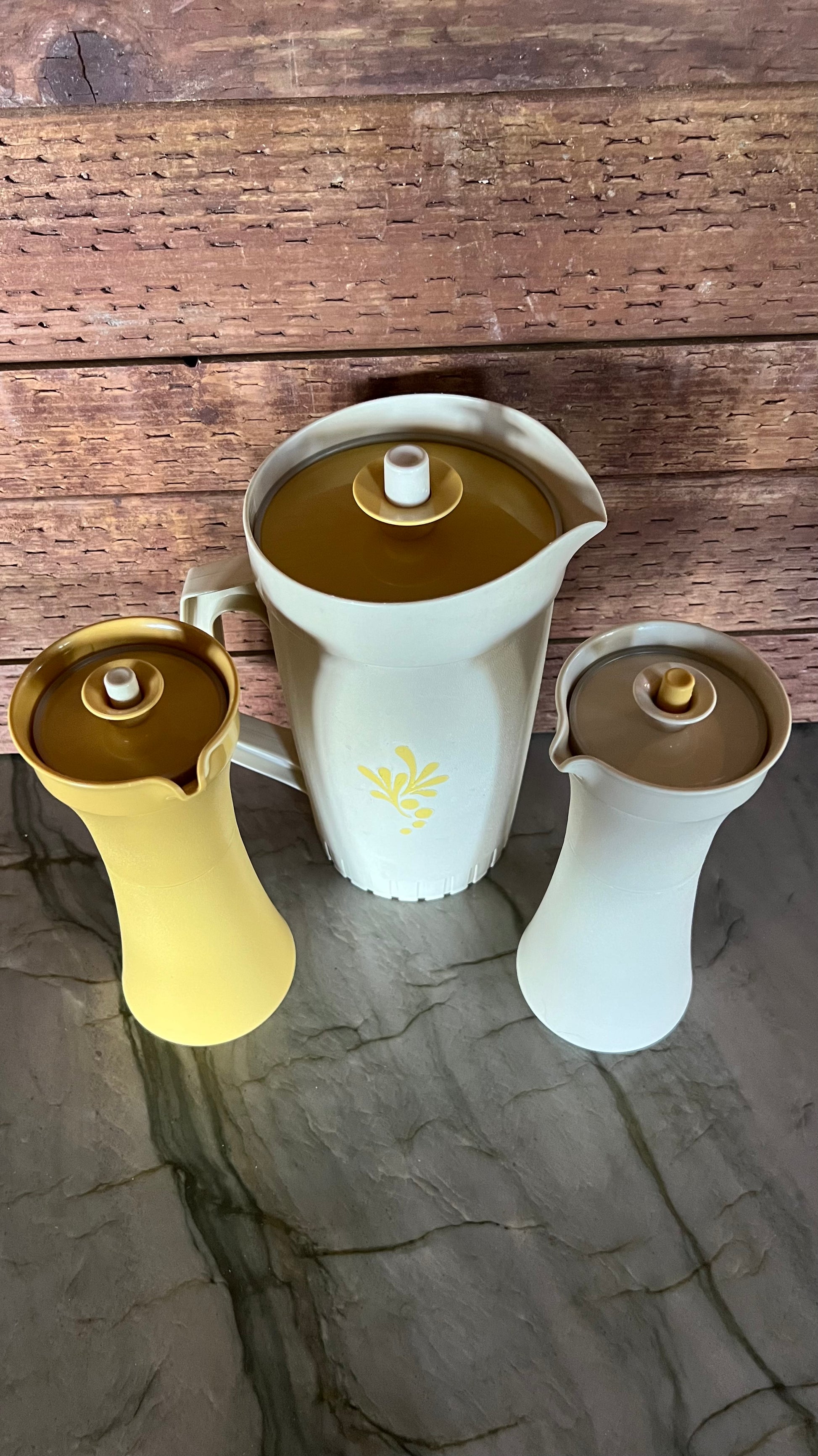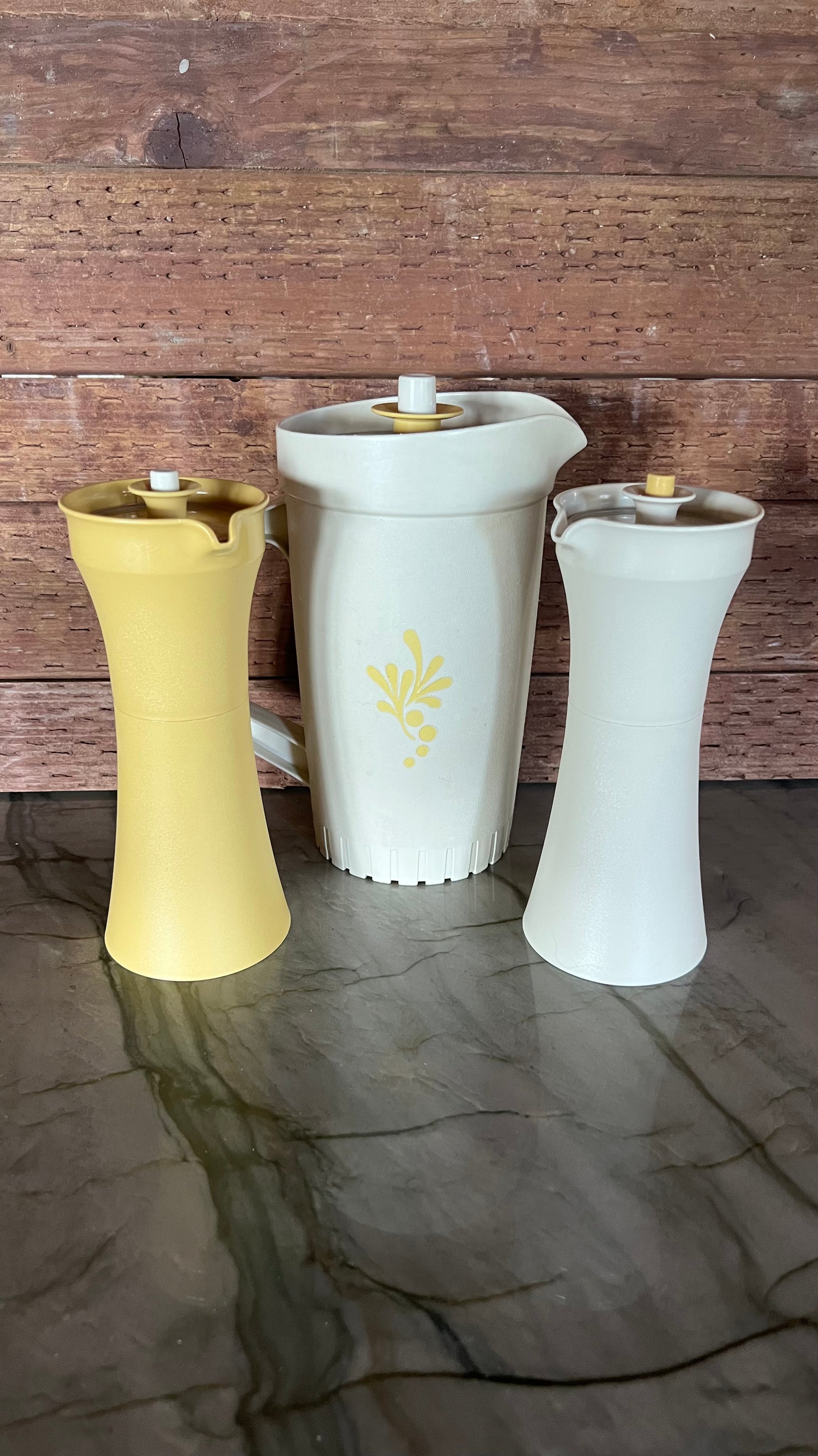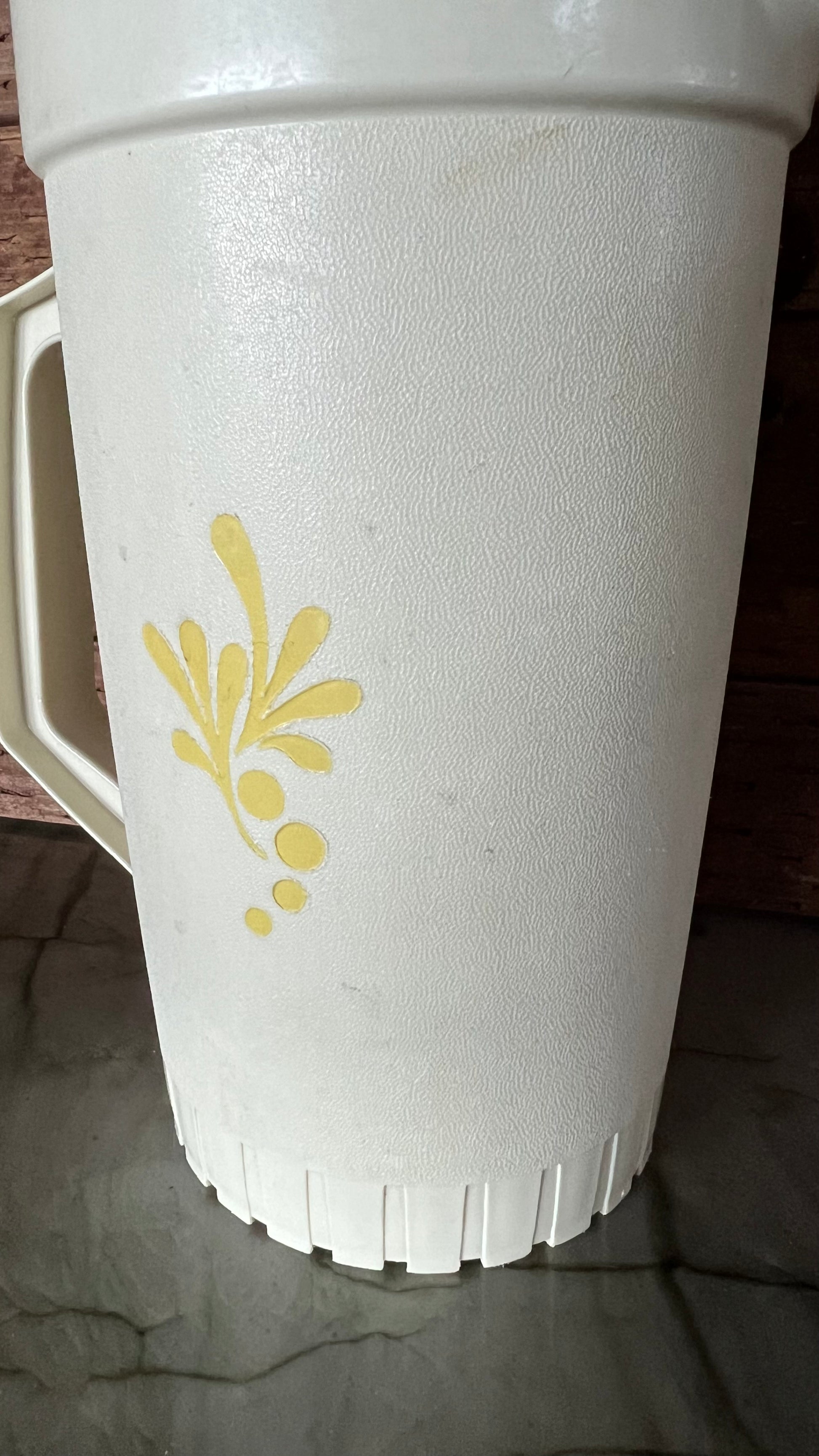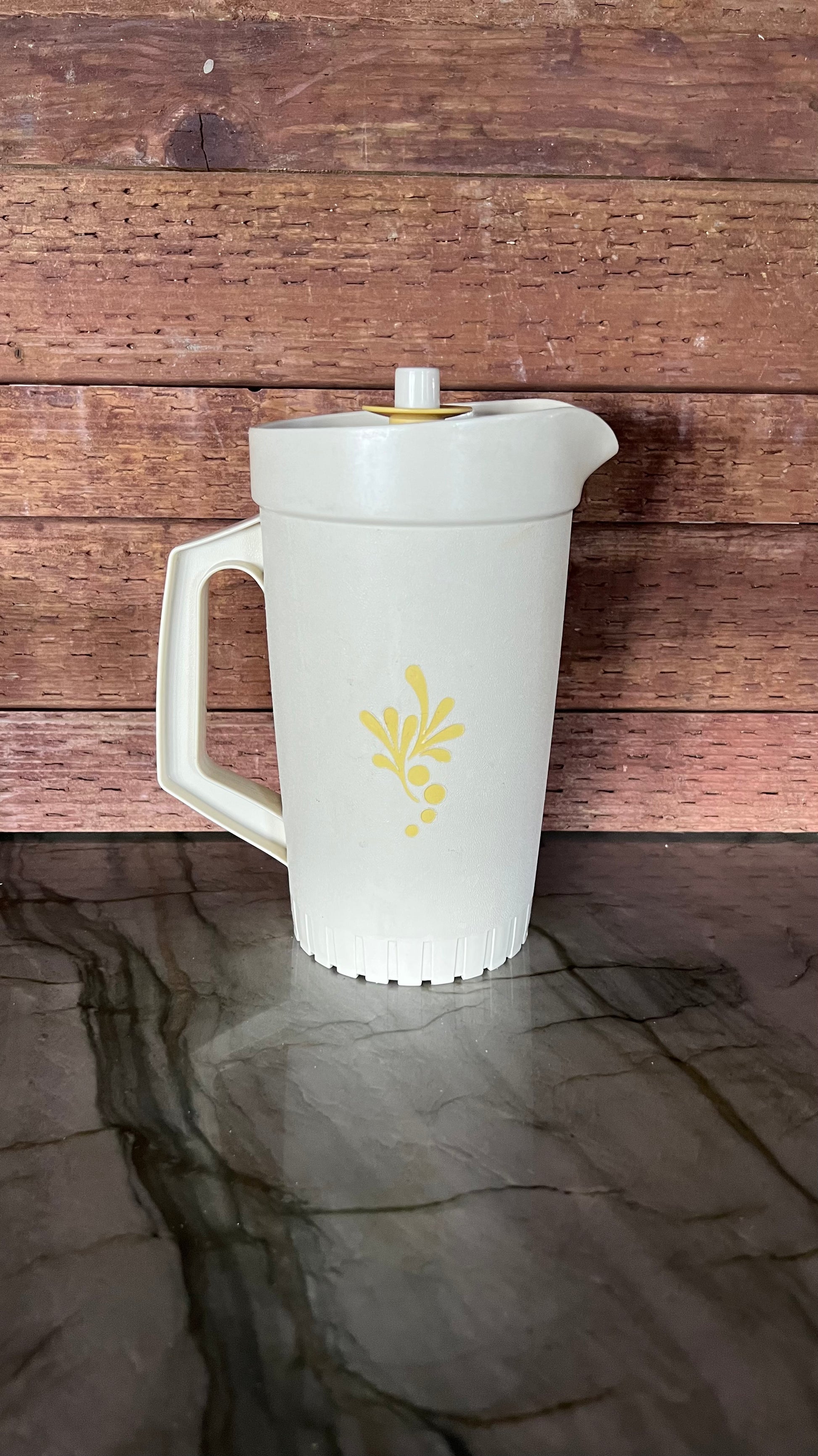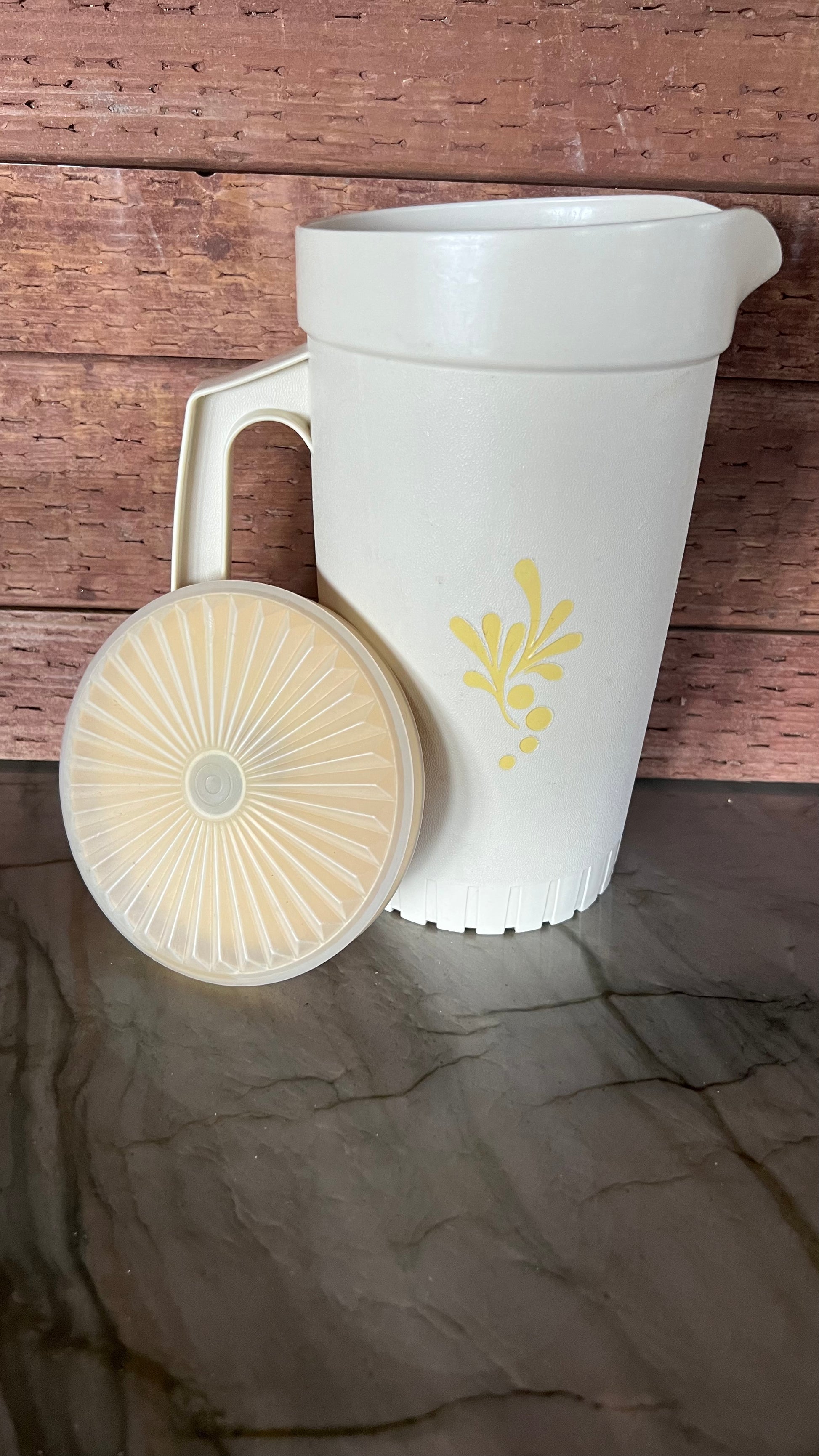 Vintage Tupperware with lid! Almond and harvest gold coloring. Stamped 874-8 on the bottom. In good vintage condition, showing light signs of wear, see pictures for more details. Measures 8.5” tall with a 3.75” diameter at the bottom. 1 quart capacity. Likely form the 1970s!
