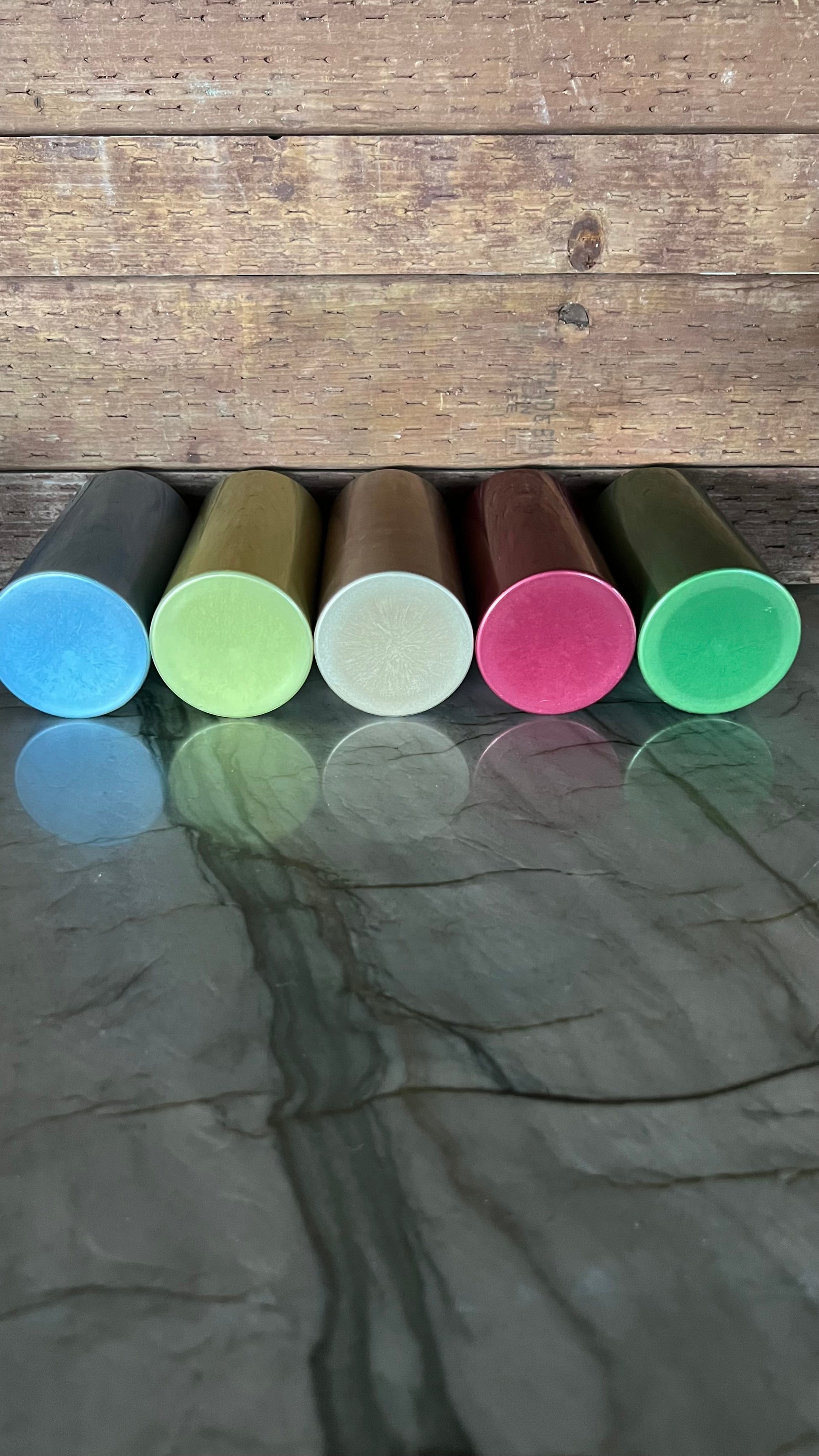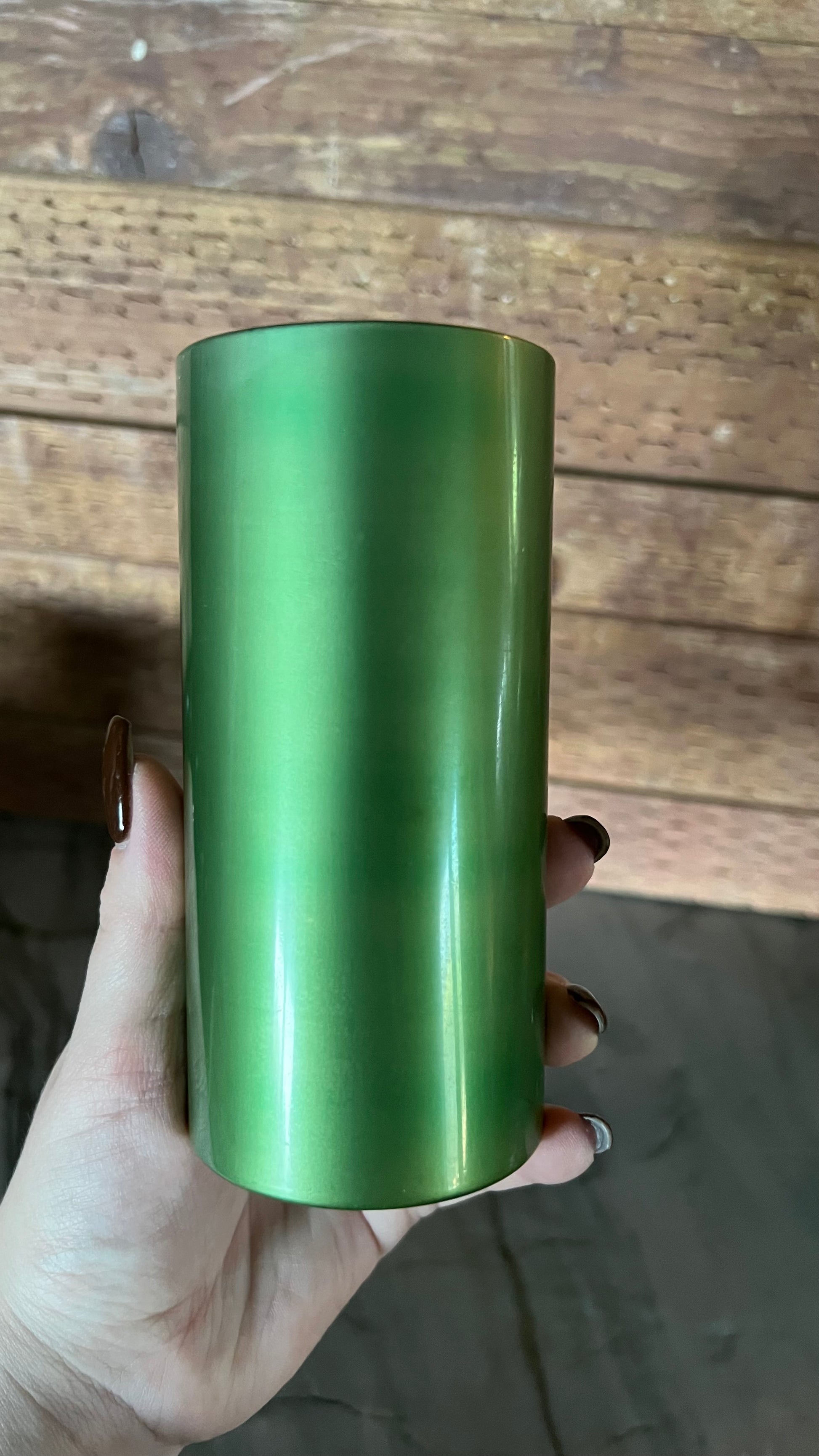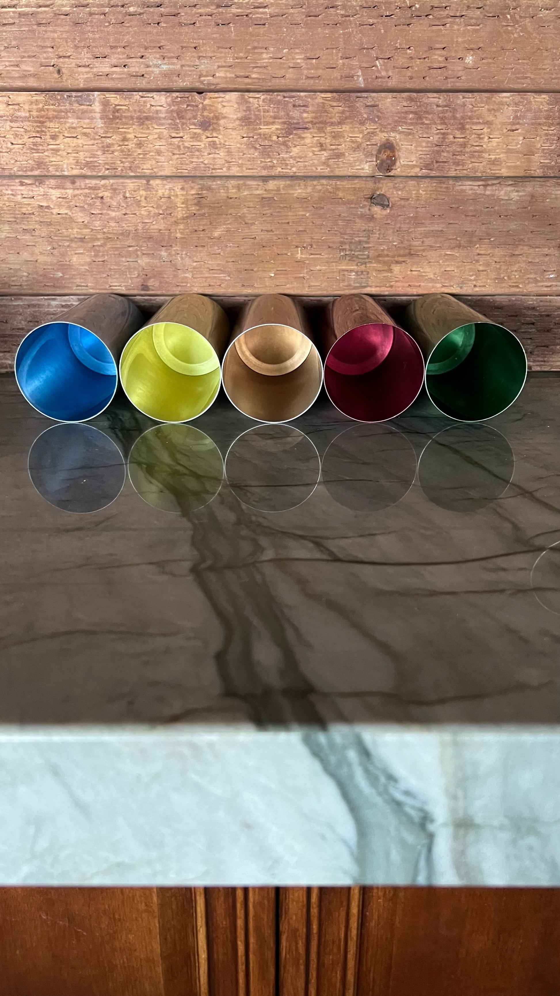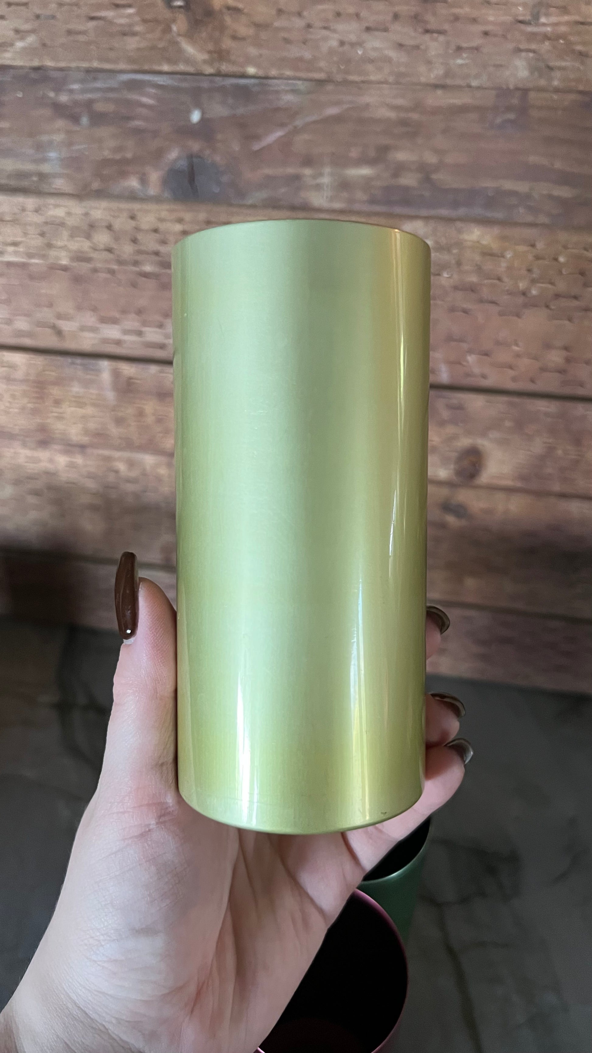 Beautiful vintage aluminum drink ware set, including a pitcher, and five cups. The pitcher measures 4.5” in diameter at the base, and 7.25” tall. The cups measure 2.5” in diameter and 5.25” tall. All pieces are in good vintage condition, colors are nice and vibrant, but do show some signs of wear.