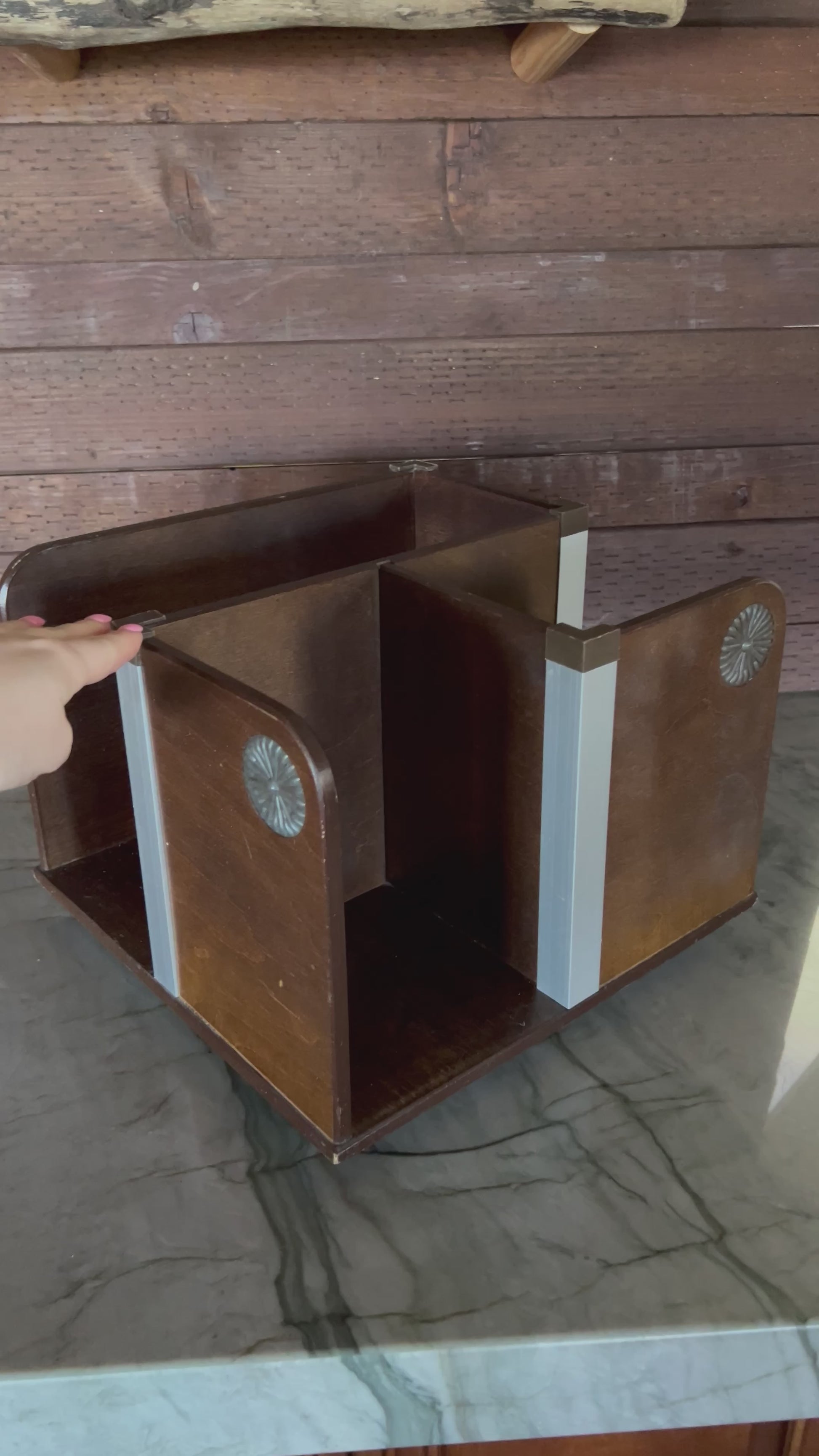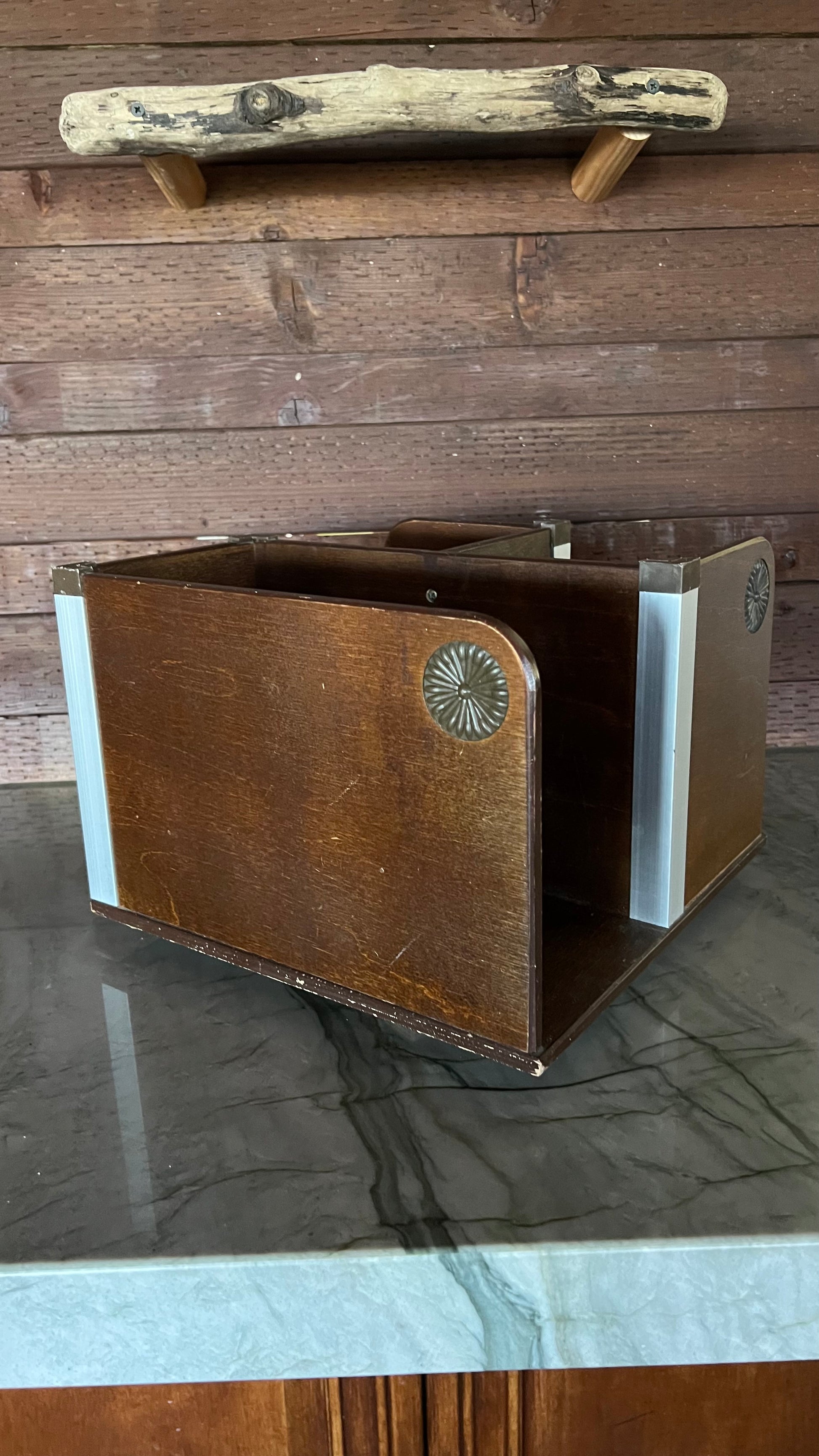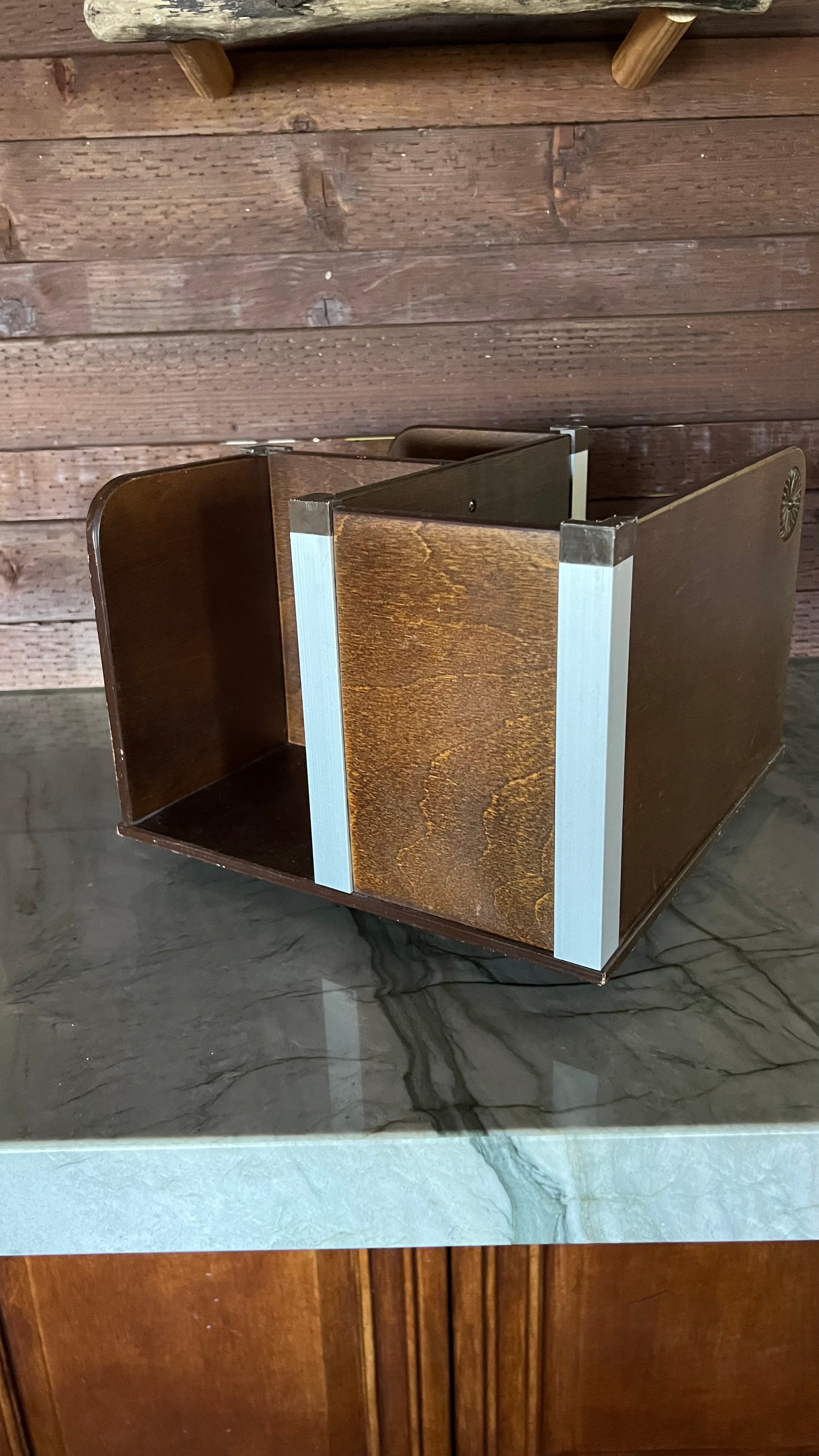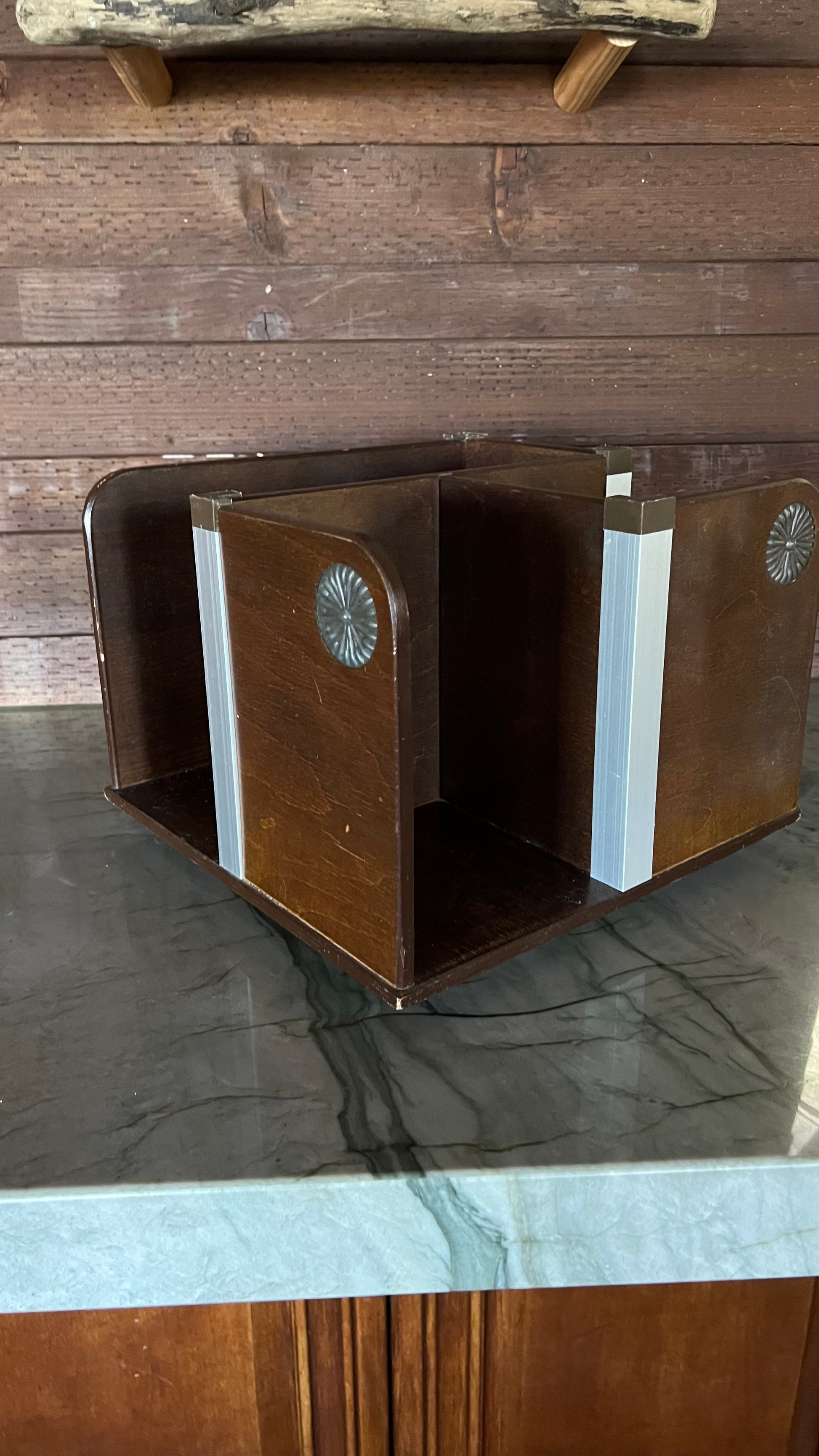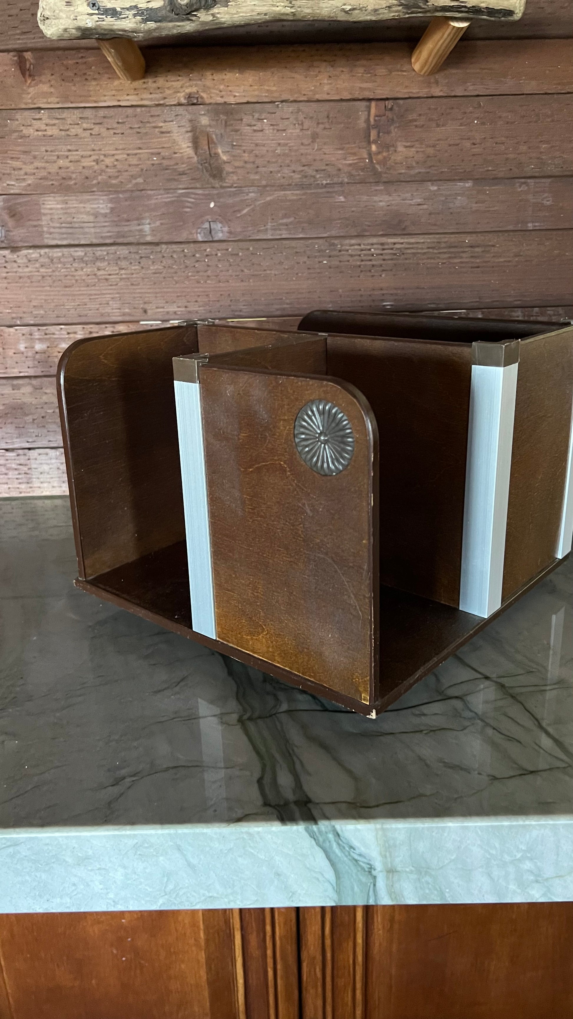 Incredible wooden vintage mid century modern lazy Susan! Four compartments, with metal edges. In excellent vintage condition, showing very mild signs of wear. Turns on a dime! Measures